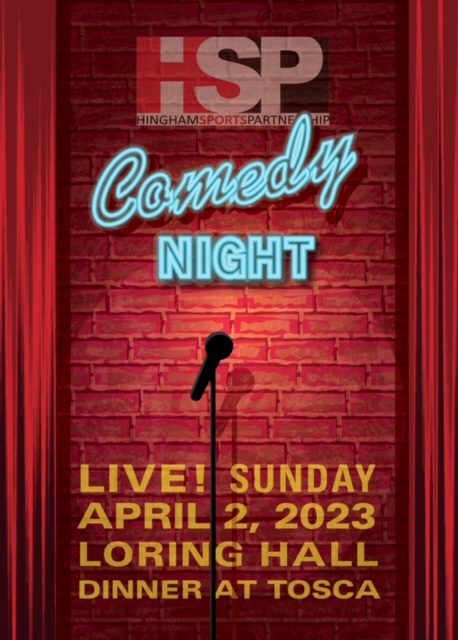 Join Hingham Sports Partnership (HSP) for its Comedy Night fundraiser on Sunday April 2 to help raise funds for youth and high school athletic programs in Hingham. Three professional comedians, Will Noonan, Christine Hurley, and Kelly MacFarland, will headline the show at the Loring Theater. Doors open at 6pm and the show starts at 6:30pm.