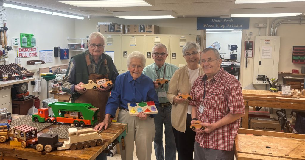 They also share their expertise to help repair furniture or create items for neighbors. In fact, some members have assisted in building sets for Linden Ponds’ theater productions and contributed handcrafted items to the community’s annual Harvest Fair.