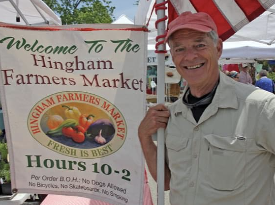 As president of the Hingham Farmers Market, he was a well-known face at this popular gathering place on Saturday mornings and during the winter market at the Wompatuck State Park Visitors Center, enjoying pleasant conversations with vendors and patrons and making sure the market was running smoothly.