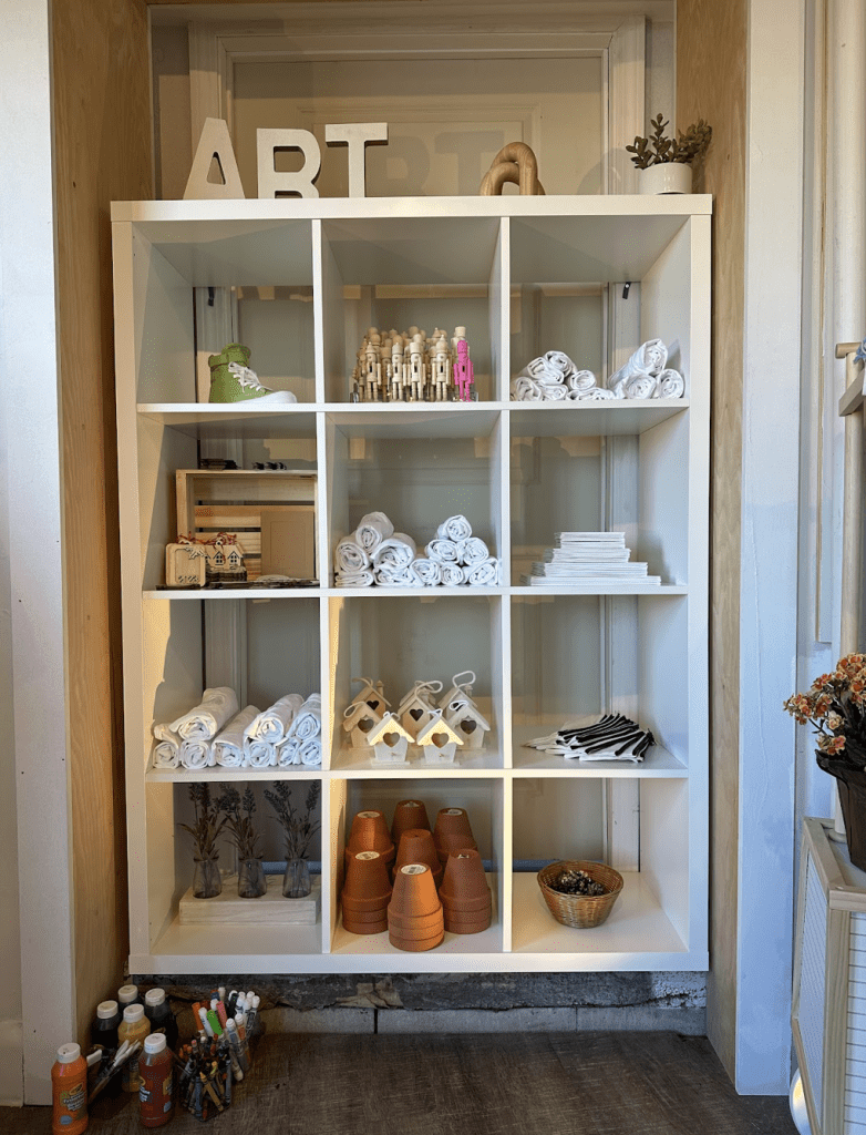 Weekends focus heavily on family workshops that run for 1 hour and 15 minutes. Families may sign up online with a max of 10-12 guests and the cost is $29.99 per guest. When guests arrive, they can select an item to create/decorate, such as a tote bag, flower pot, or t-shirt. The options and various mediums–paints, stencils, and more– are displayed so families may peruse and select what calls to them. You may also request a certain medium ahead of time. Sneaker workshops or parties are about three hours and cost $99.99 per participant, who must bring their own sneakers. If you’d rather have Nandita do the prep work on the shoe, she offers that for $139.99 per person.
