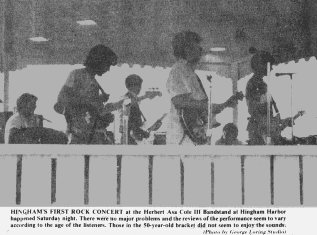 Over 600+ well behaved fans of all ages came to listen to Metamorposis on that warm summer night, which marked the first time rock and roll had ever been played at Hingham Harbor. Although the concert was a huge success, the Hingham Journal reported that members of the “50-year-old bracket did not seem to enjoy the sounds.”