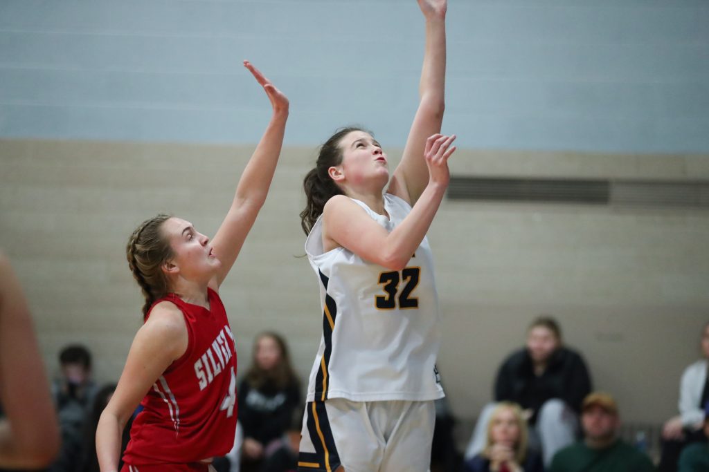 Freshman Elle Orlando makes a rare two pointer during the Silver Lake game. The 3-point specialist scored 21 of them over a three game stretch recently.