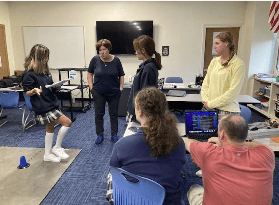 In addition to Anne Marie Clogston, the team was coached by Dan Walker, an electrical engineer whose daughter attends NDA. Team mentors, in addition to Lucy Driscoll, include former principal Kathy Puleo, and Bill Clogston, a software developer at Meta Platforms. Anne Marie and Bill Clogston are parents of two NDA graduates and a third daughter who is finishing up her junior year at the school. The NDA Cou-gears are grateful to Walker Electric and Anderson Trucking Service for their generous sponsorship and Massa Products Corporation for their support.