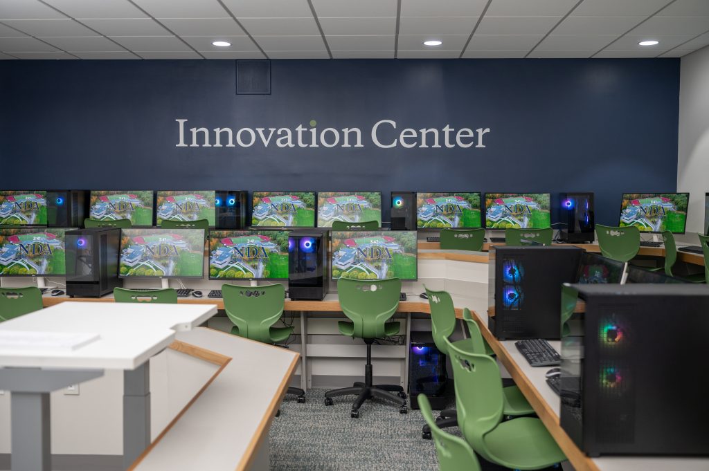 NDA’s Teixeira Family Innovation Center features three distinct and interconnected spaces: Computer Lab, Engineering Lab, and Recording Studio.