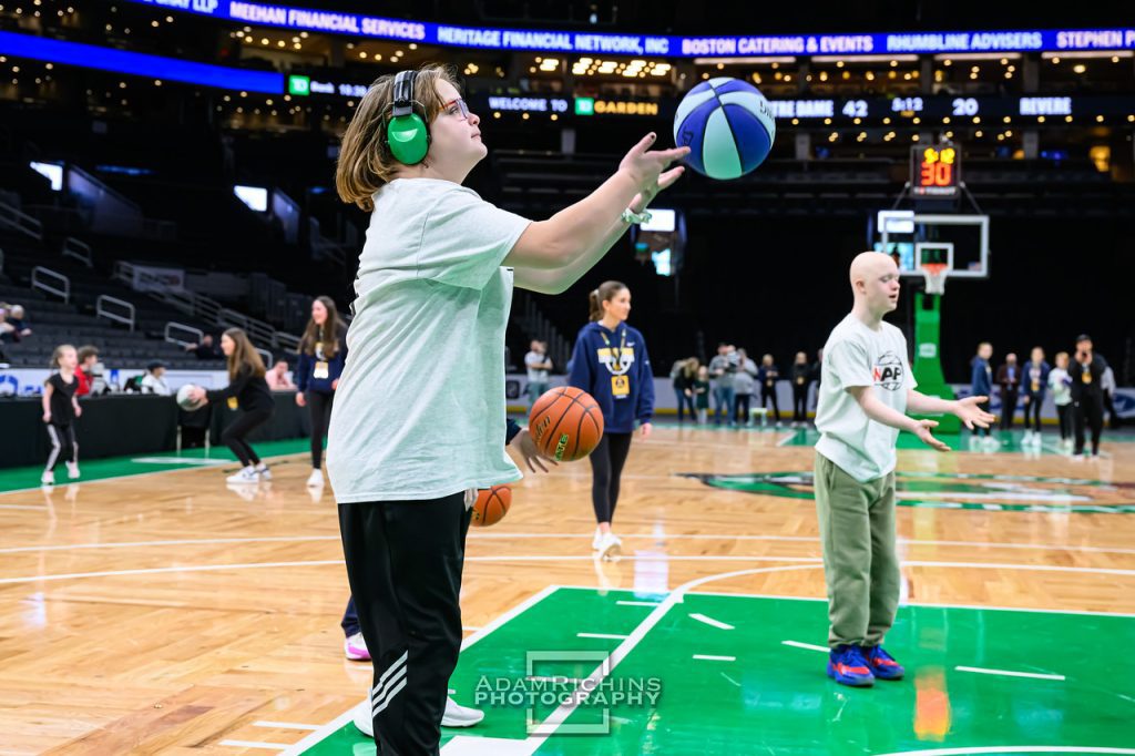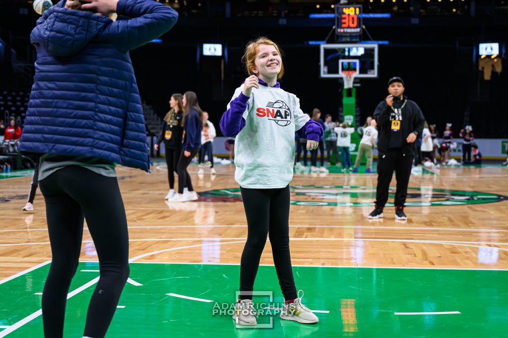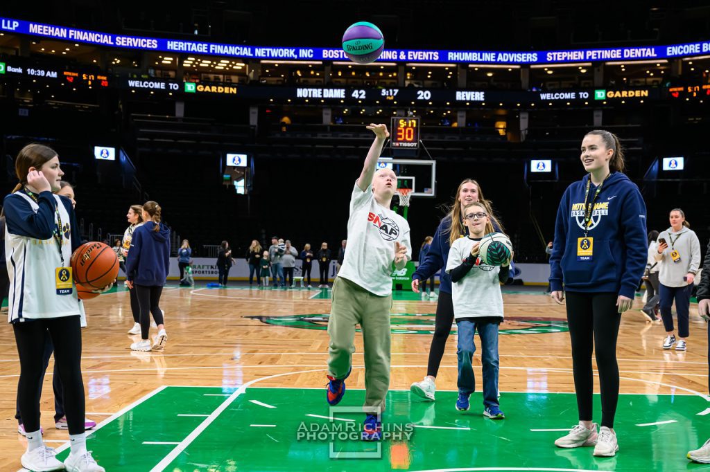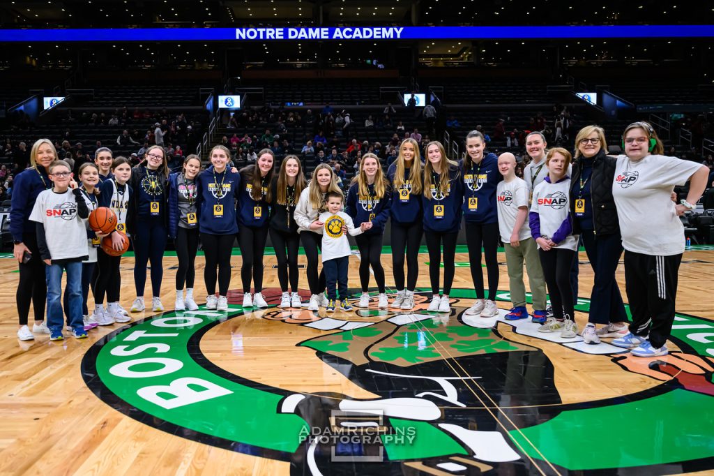 But what’s even more fun was the NDA team participated in the Annual Andrew Lawson Foundation Basketball Tourney at TD Garden on Sunday. Coach Nickie Orlando’s NDA squad overwhelmed Revere 60-36 on the Celtics home court improving their record to 6-0. At halftime, the NDA JV players escorted the SNAP players onto the floor with many proud parents watching.