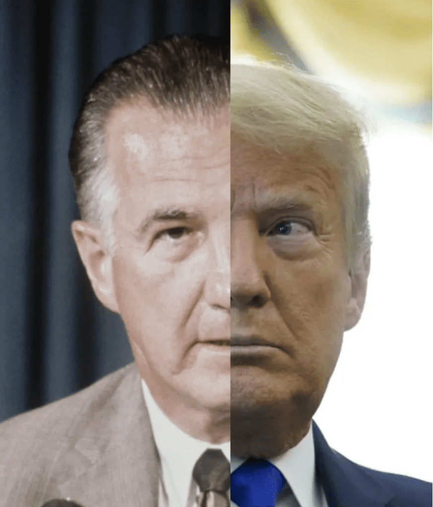 If all this sounds familiar, the similarities with Donald Trump are many: Agnew’s use of pejoratives when referring to the opposition: “nattering nabobs of negativism” and “pusillanimous pussyfooting on law and order,” have been replaced by “Crooked” Hillary, “Pocahontas” Elizabeth, “Little Marco” and “Sanctimonious DeSantis,” to name a few.