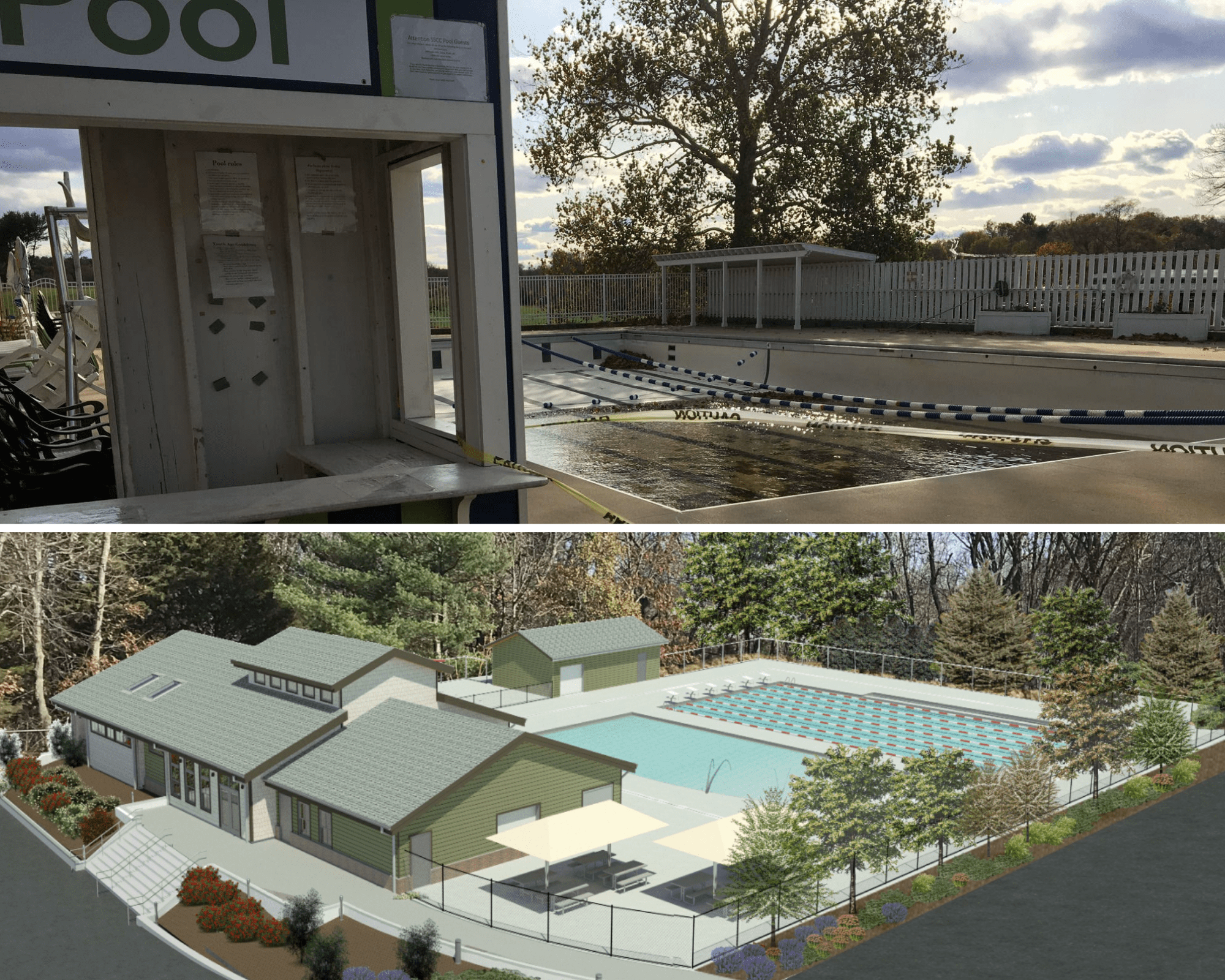 The original Town pool was built in the 1950s and upgraded in the 1980s. It was permitted as a seasonal facility. The Town and SSCC have worked diligently to repair and maintain the pool, enjoying many years of safe operation. It was closed in the fall of 2019 due to structural weaknesses, having reached the end of its useful life.