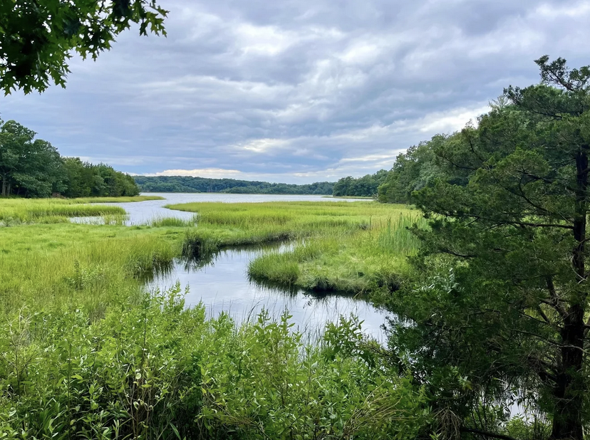 This freshwater ecosystem consists of surface water from Conservatory Park and Baker’s Hill, wetlands along Beal St., intermittent streams, Tucker’s Swamp, and ground water from the adjacent forest, all draining into Hockley Run, a perennial stream that flows into the Back River at Beals’ Cove. There Hockley Run’s fresh water mixes with the salt water of the tidal Back River to create its estuary. “Estuaries, where fresh and salt water mix, are among the most productive ecosystems in the world and are critical to the survival of marine species. [The Ecology of the Back River, Eichner, White & Howes, UMassDartmouth School for Marine Science, 2017.]