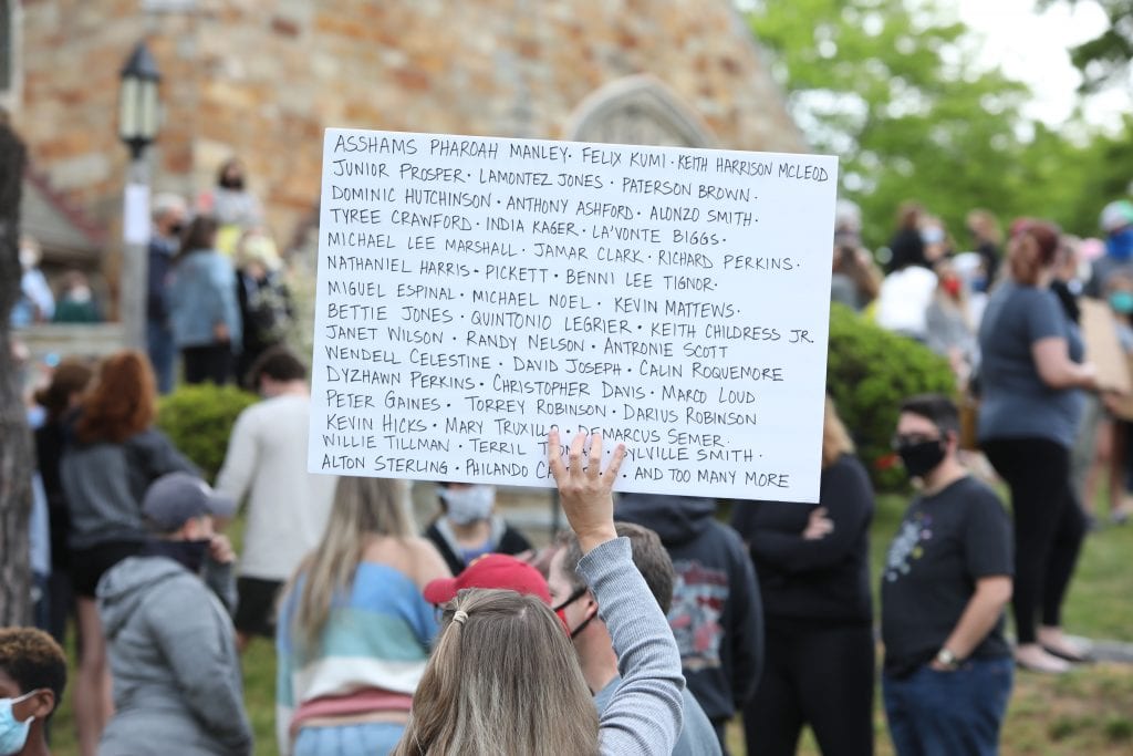 The event began with inspiring remarks from Reverend Tim Schenck, Rector at St. John’s Church. It concluded with eight minutes and 46 seconds of silence to mark the time when the late George Floyd was pinned to the ground by a Minnesota Police Officer. Prior to the period of silence, Rev. Schenck reminded attendees that at the conclusion of the event “what will just begin will be our work, our continuing work, for justice.”