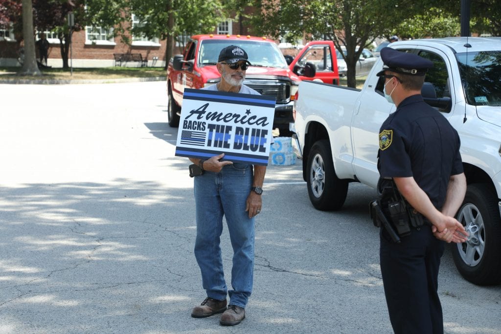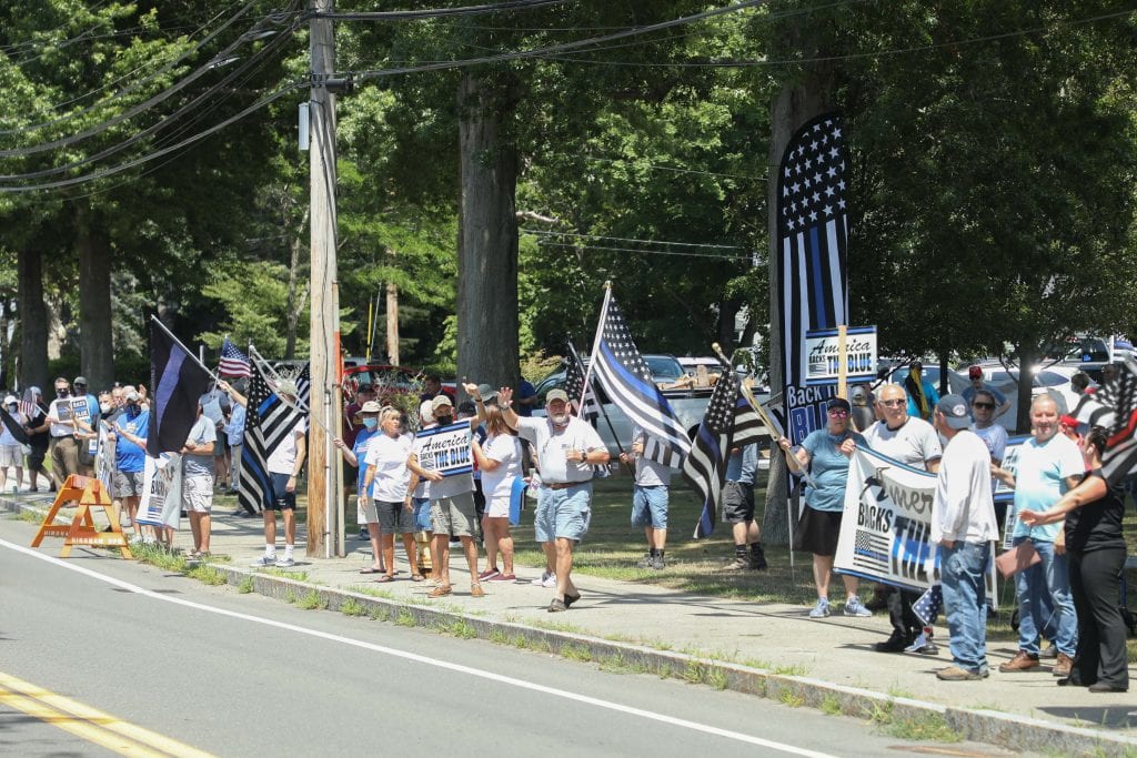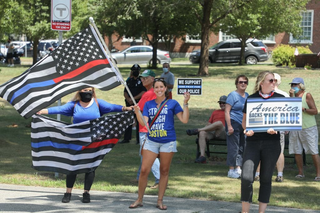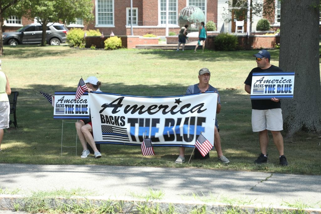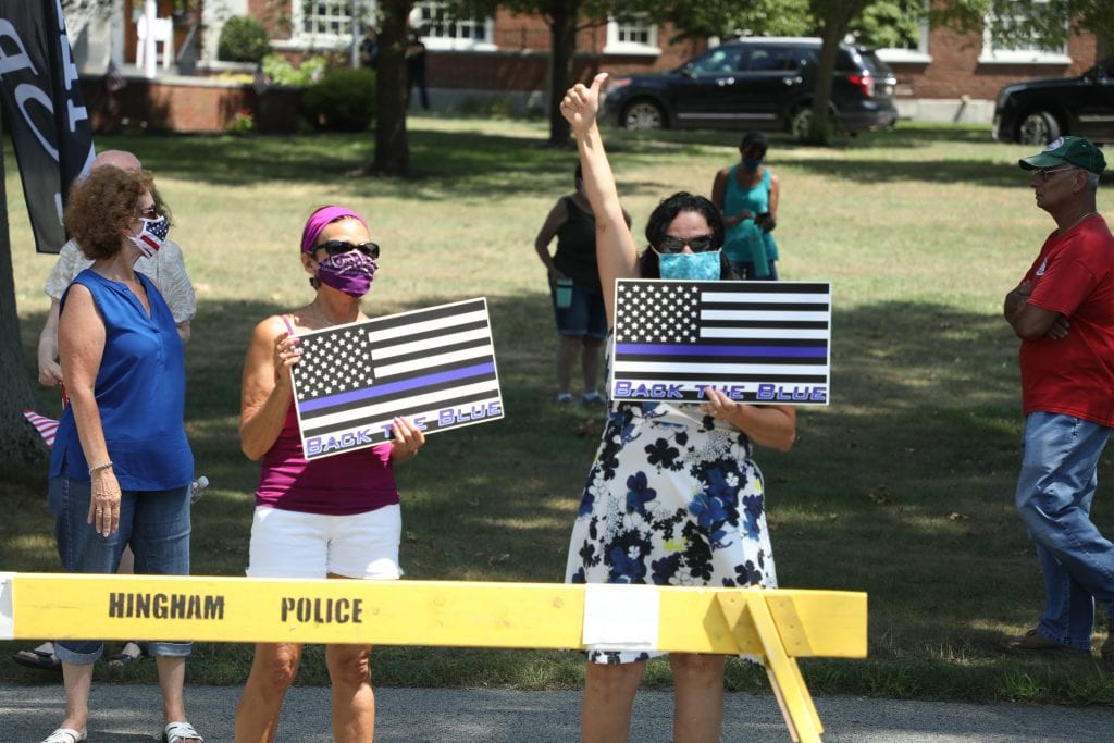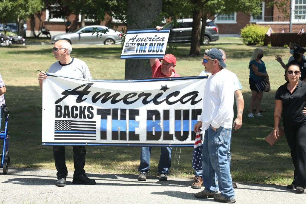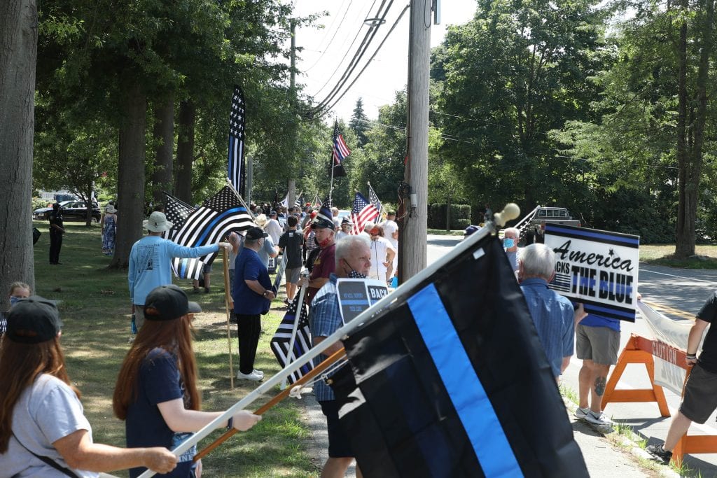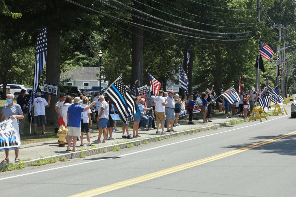 Today, Joshua Ross was on the scene the America 'Backs the Blue' event held at Hingham Town Hall. Several hundred people attended and passionately rallied in response to the Hingham Selectmen's directive calling for the removal of Thin Blue Line flags displayed on Hingham Fire trucks.