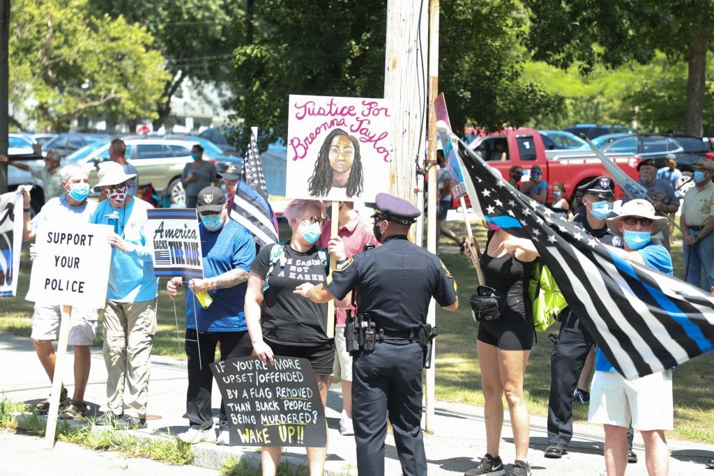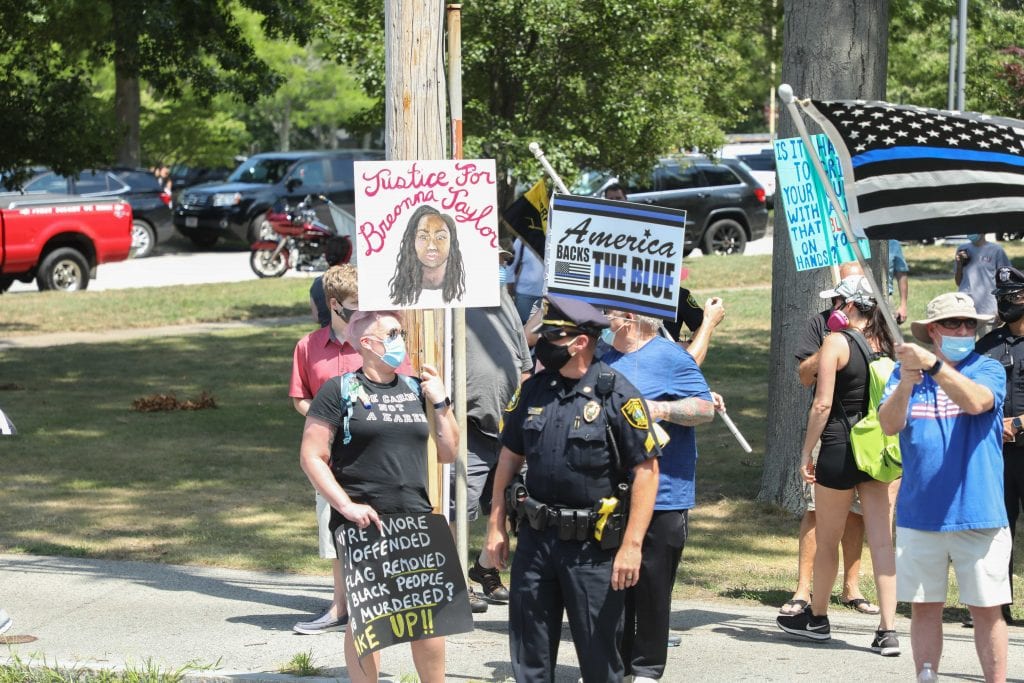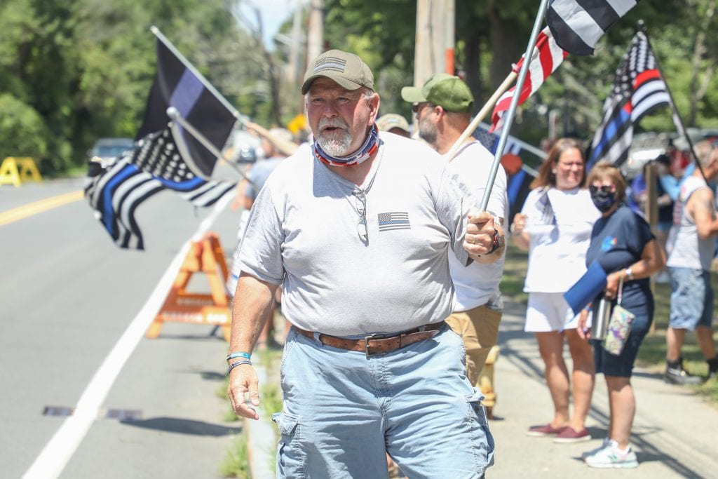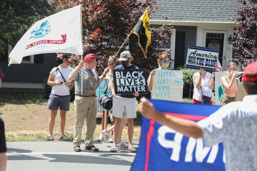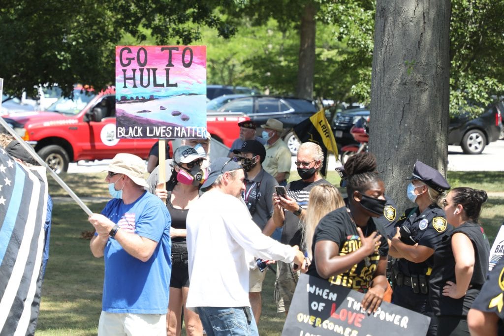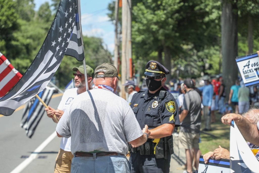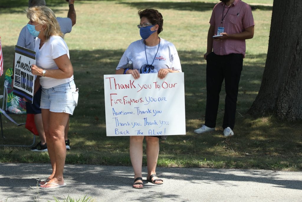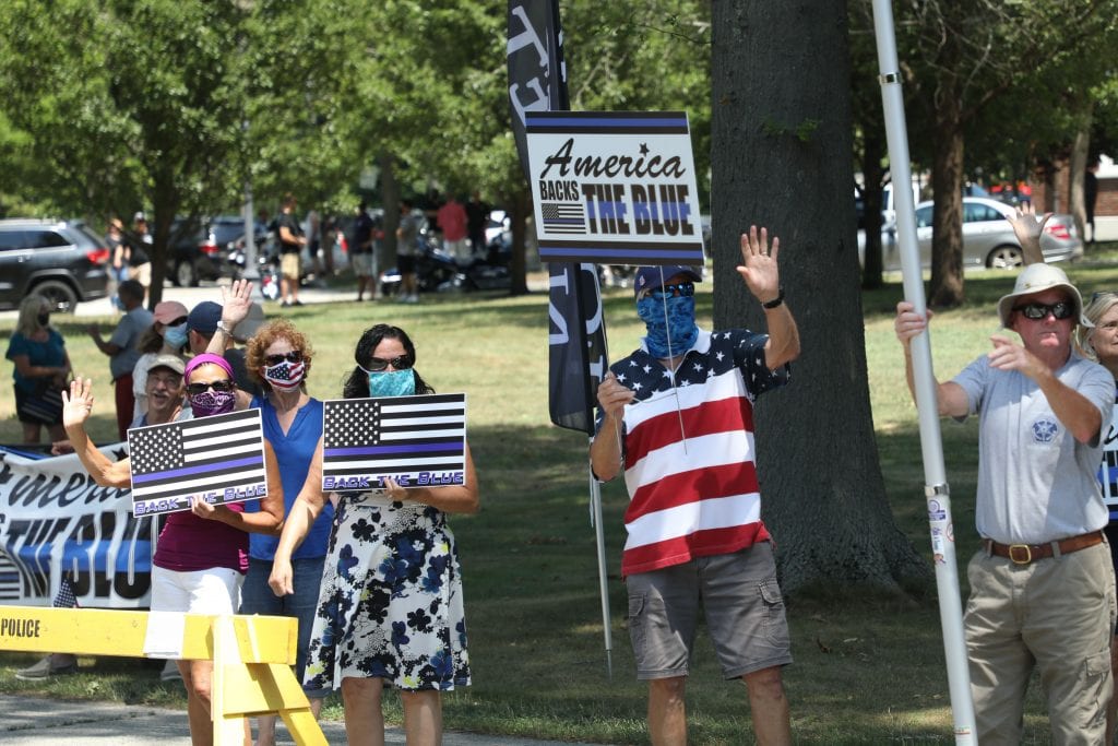 Today, Joshua Ross was on the scene the America 'Backs the Blue' event held at Hingham Town Hall. Several hundred people attended and passionately rallied in response to the Hingham Selectmen's directive calling for the removal of Thin Blue Line flags displayed on Hingham Fire trucks.