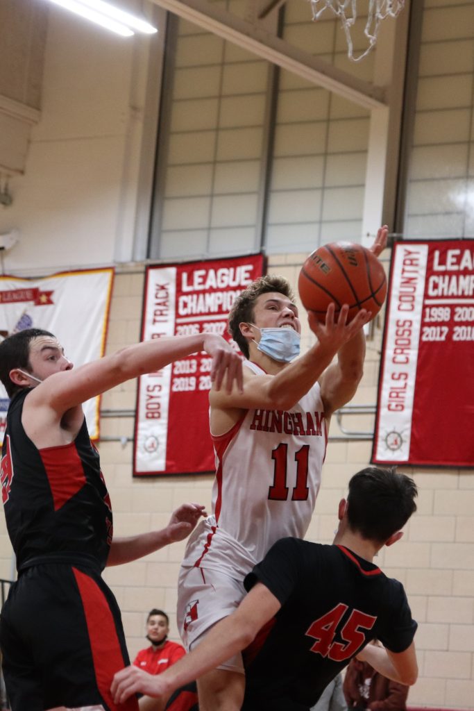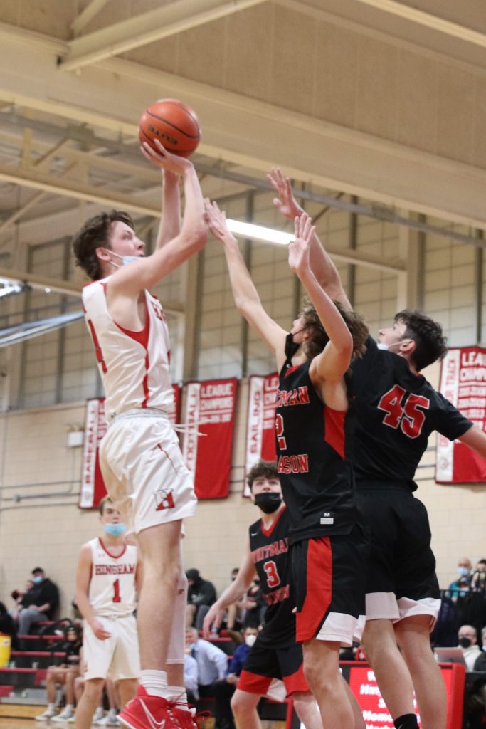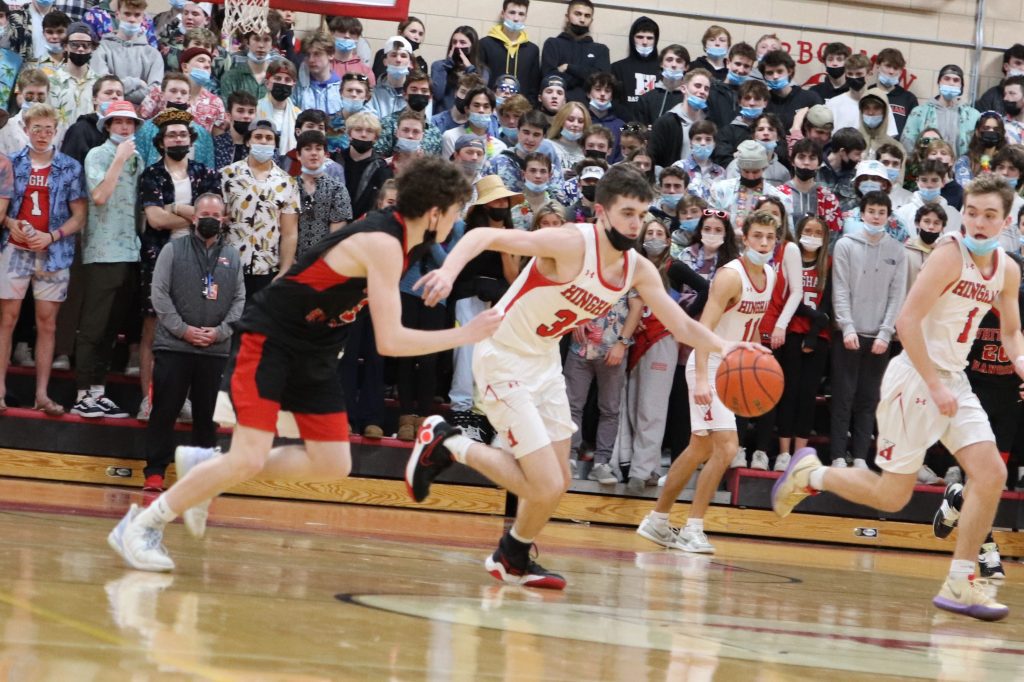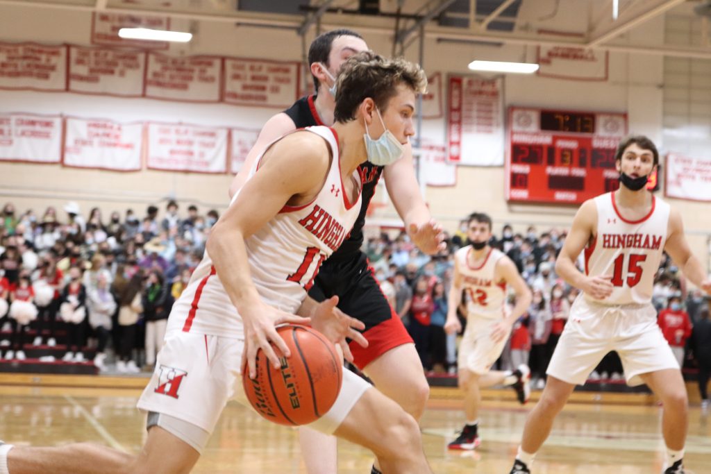 In front of a packed gym Friday night, the Harbormen beat the Panthers 57-41 in a rematch of last year's Patriot Cup Finals. Hingham avenges last year's loss with big performances by senior captain Nick Johannes (21 pts.) and junior captain Liam McBride (19 pts.).