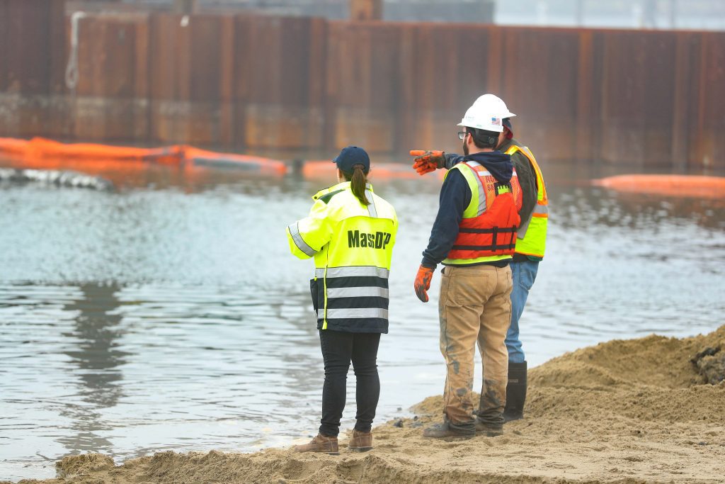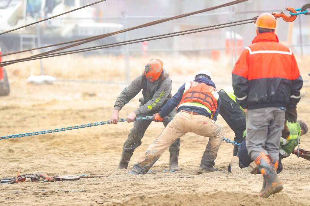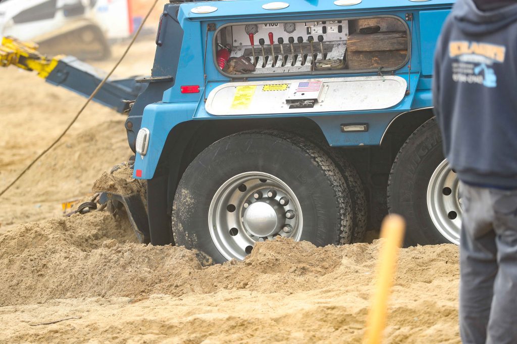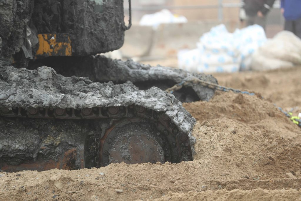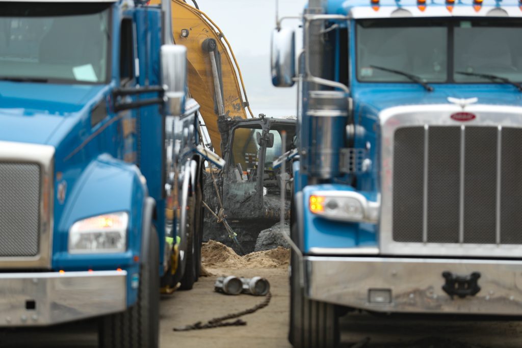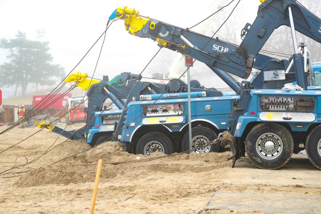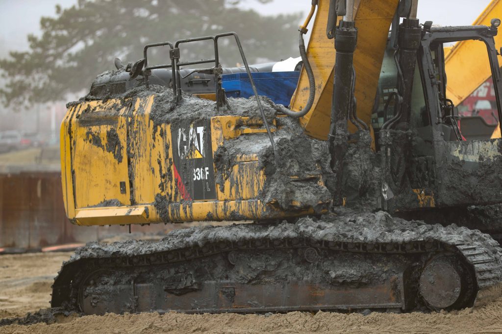 PHOTOS: Excavator Pulled from the Harbor March 19, 2022 - Photos by Joshua Ross Surrounded by a crowd of onlookers, crews used three tow trucks, two excavators, and one crane to get the semi-submerged excavator out of Higham Harbor on Saturday morning.