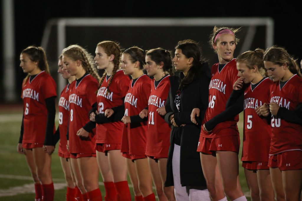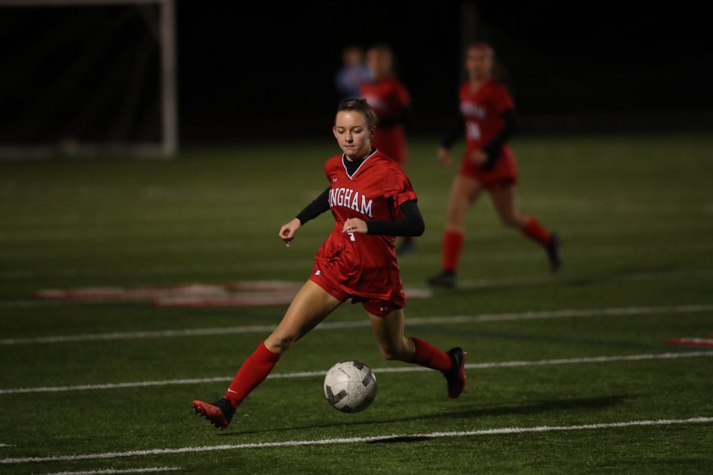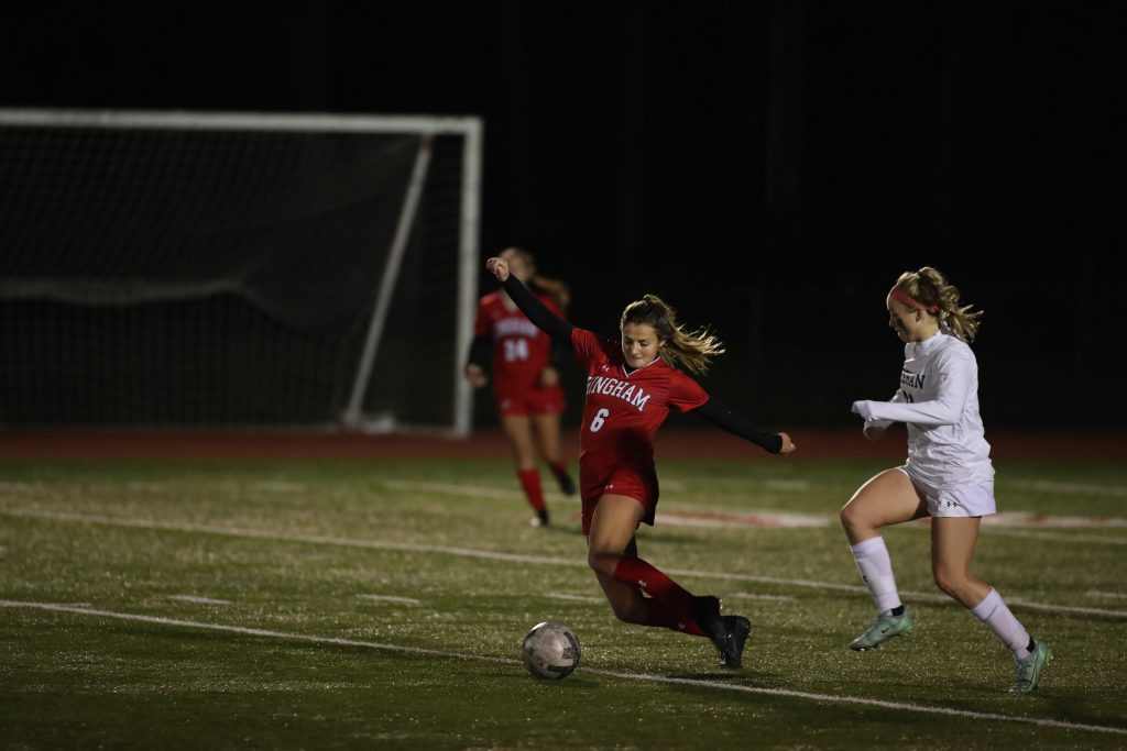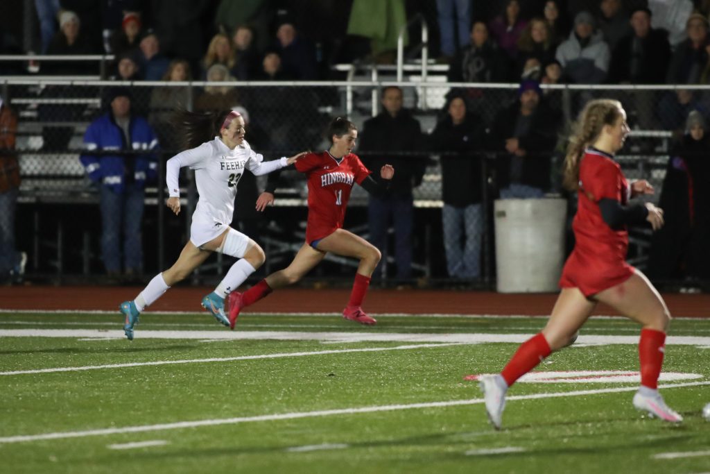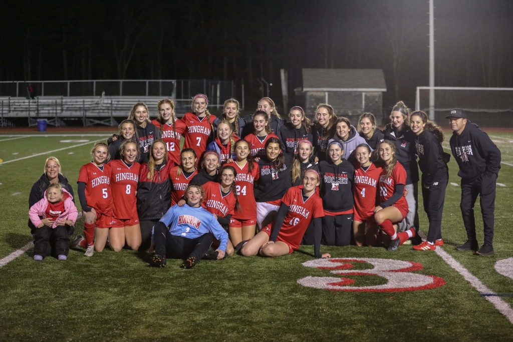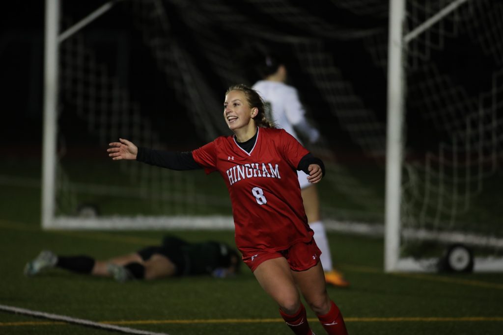 After trailing for the first time this post season, senior caption Sophie Reale scored 18 minutes into the second half tying up the game against third seed Bishop Feehan. No more goals were scored in regulation or the 2 OT. Penalty shots were even 3-3 after 5 rounds when junior Ava Vahorlak put one in the bottom left corner of the net sending Hingham to the D1 State Championship on Saturday.