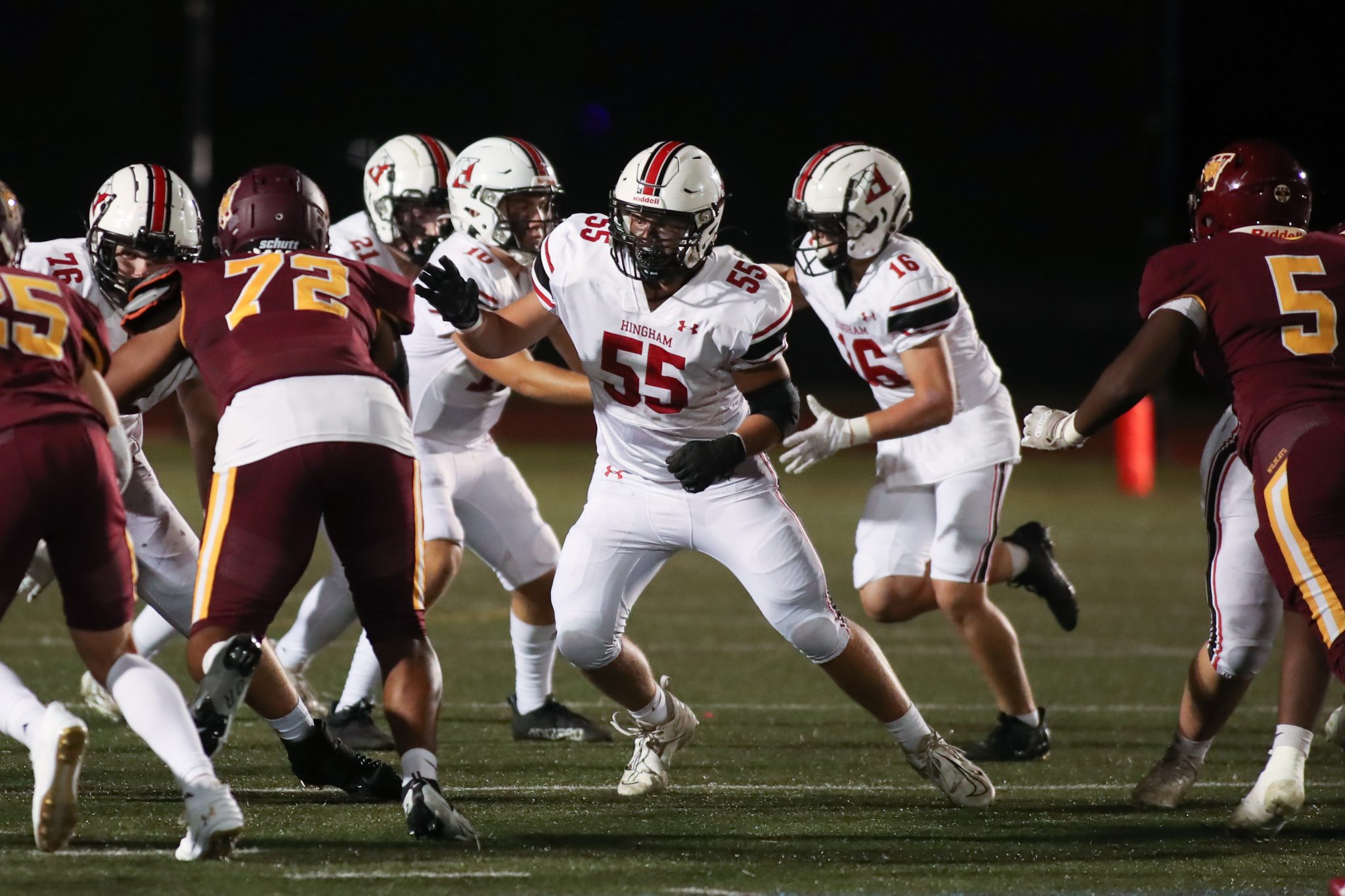 Hingham jumped out to a 14-0 lead in the first quarter before Weymouth even had one offensive snap. An opening drive lasting almost 10 minutes and a fumble recovery on the ensuing kick-off led to two receiving touchdowns by senior captain Gunnar Corey and senior Jeremy Aylward. Unfortunley, the Harbormen couldn’t keep that lead and the game was tied by halftime.  Untimely turnovers continue to plague Hingham this year.  Sophomore Jake Varholak made his first start for varsity and threw for three TDs in the 33-21 loss. Next up is Plymouth North away on Thursday night.