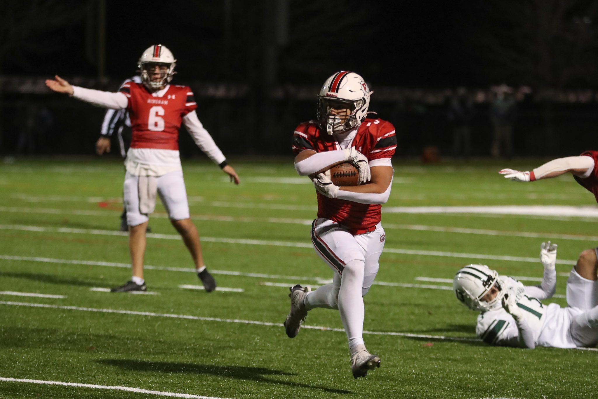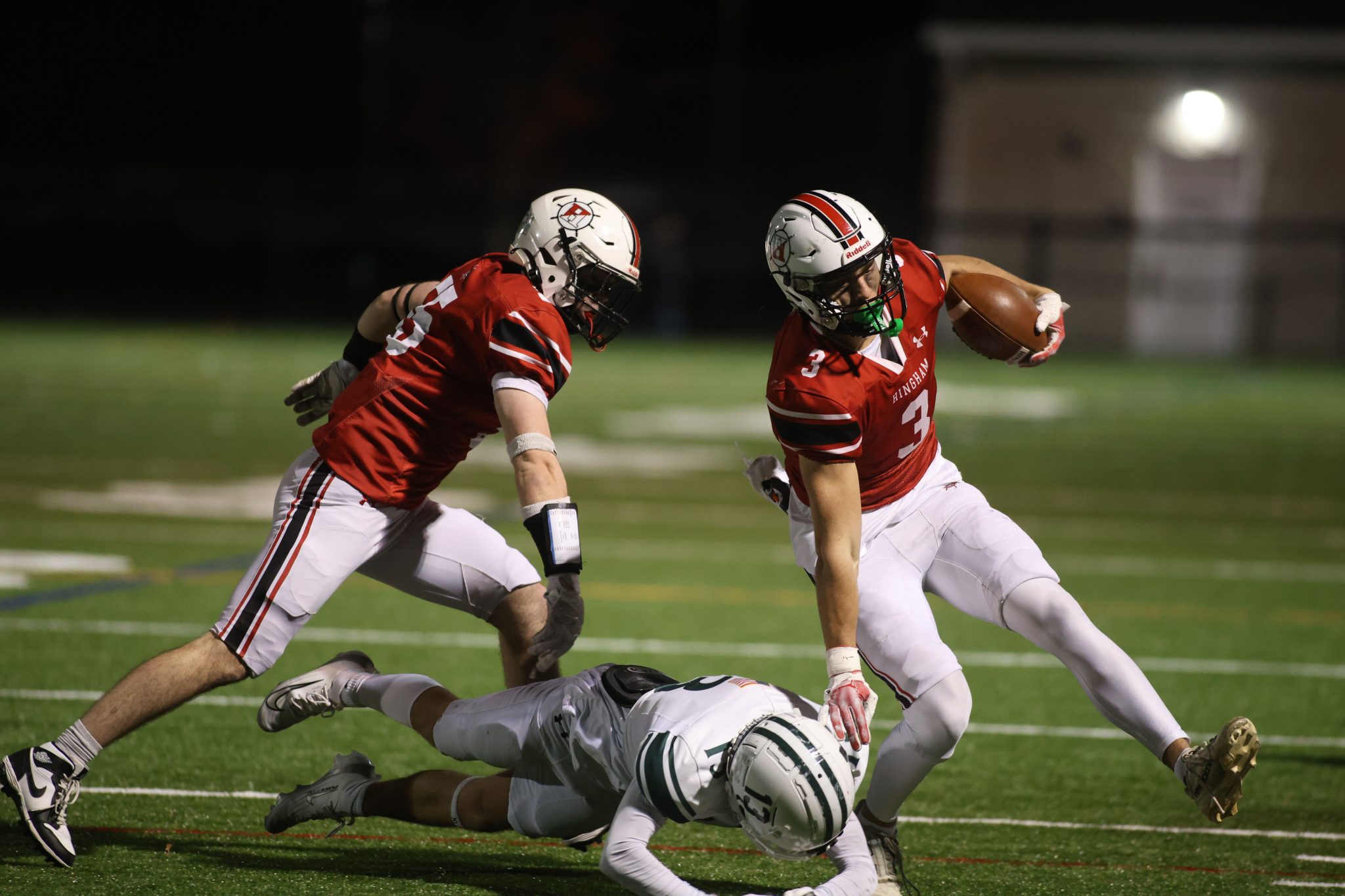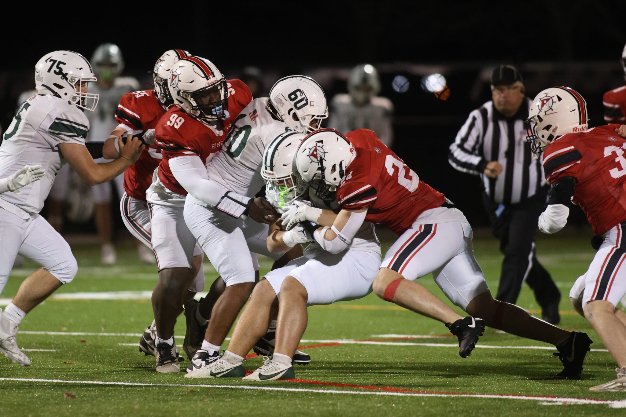 Hingham Harbormen took the opening drive the length of the field and never looked back. They scored on their first three possessions and headed into the second quarter with a 22-0 lead over Minnechaug in last night’s Round of 16 Division 3 playoff game. It was a full team effort in the 36-14 win.