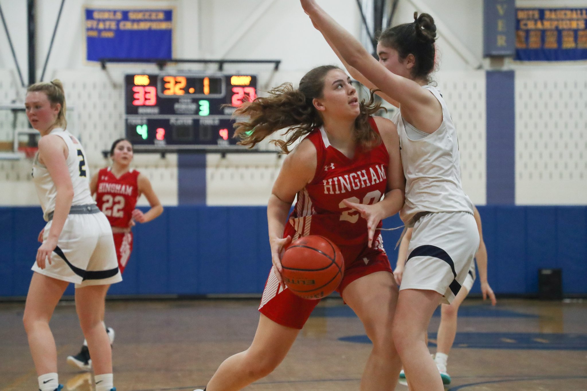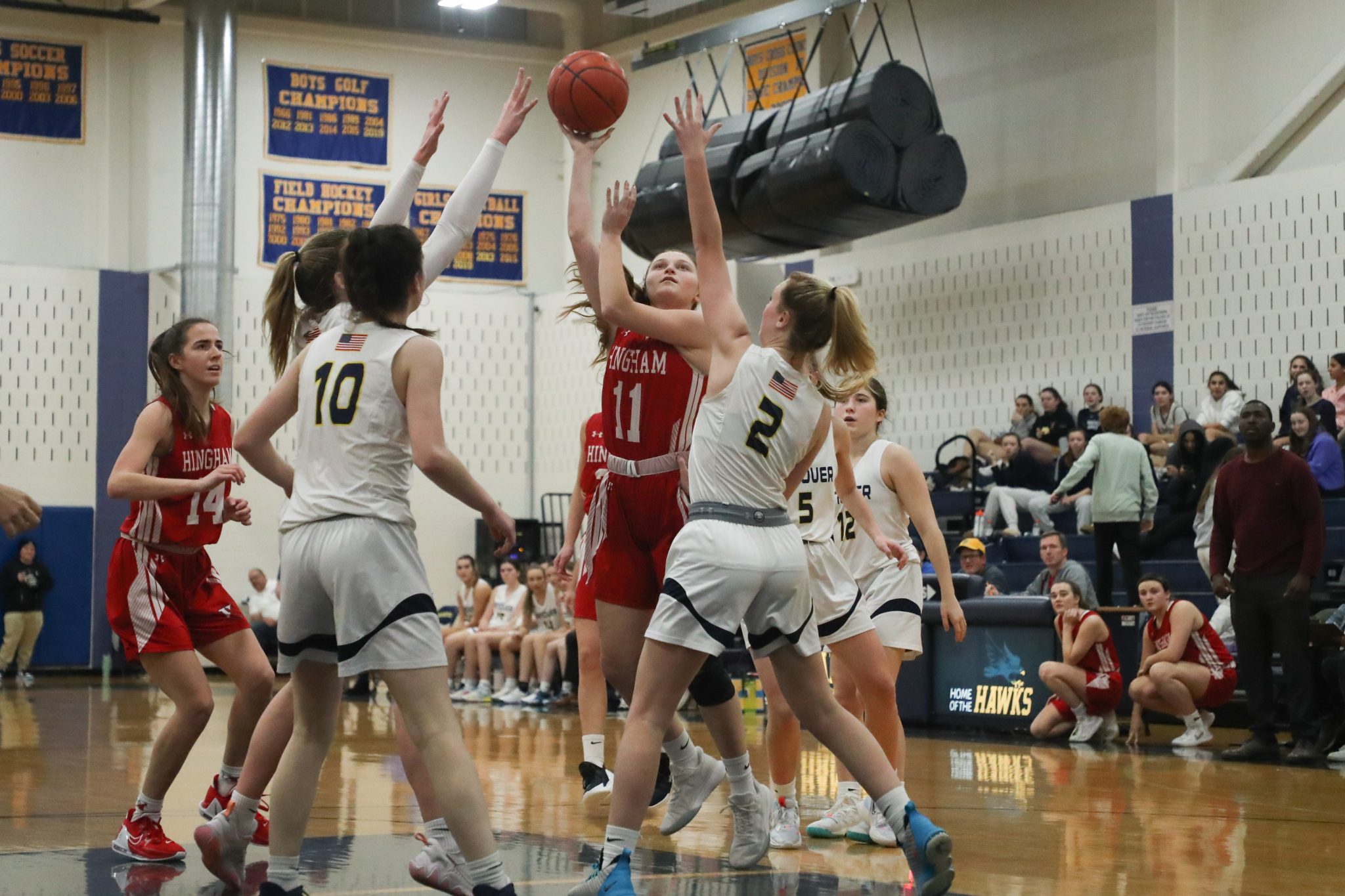 The Harborwomen couldn’t overcome a third quarter surge from Hanover in last night’s 52-46 loss. Hingham’s senior captain Ellie Savitscus led all scorers with 13 points while fellow senior captain Colette Hanney put up 10 points.
