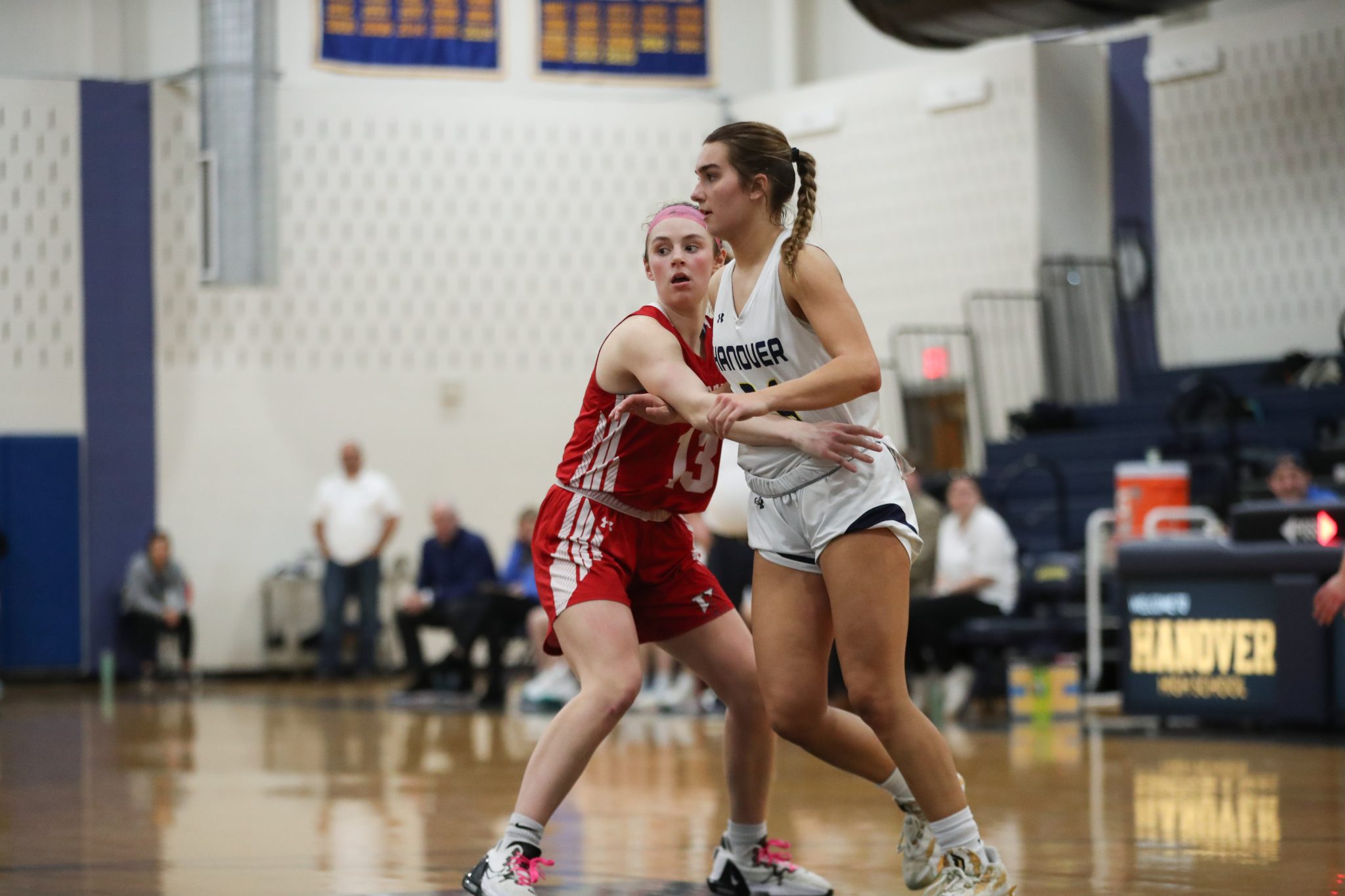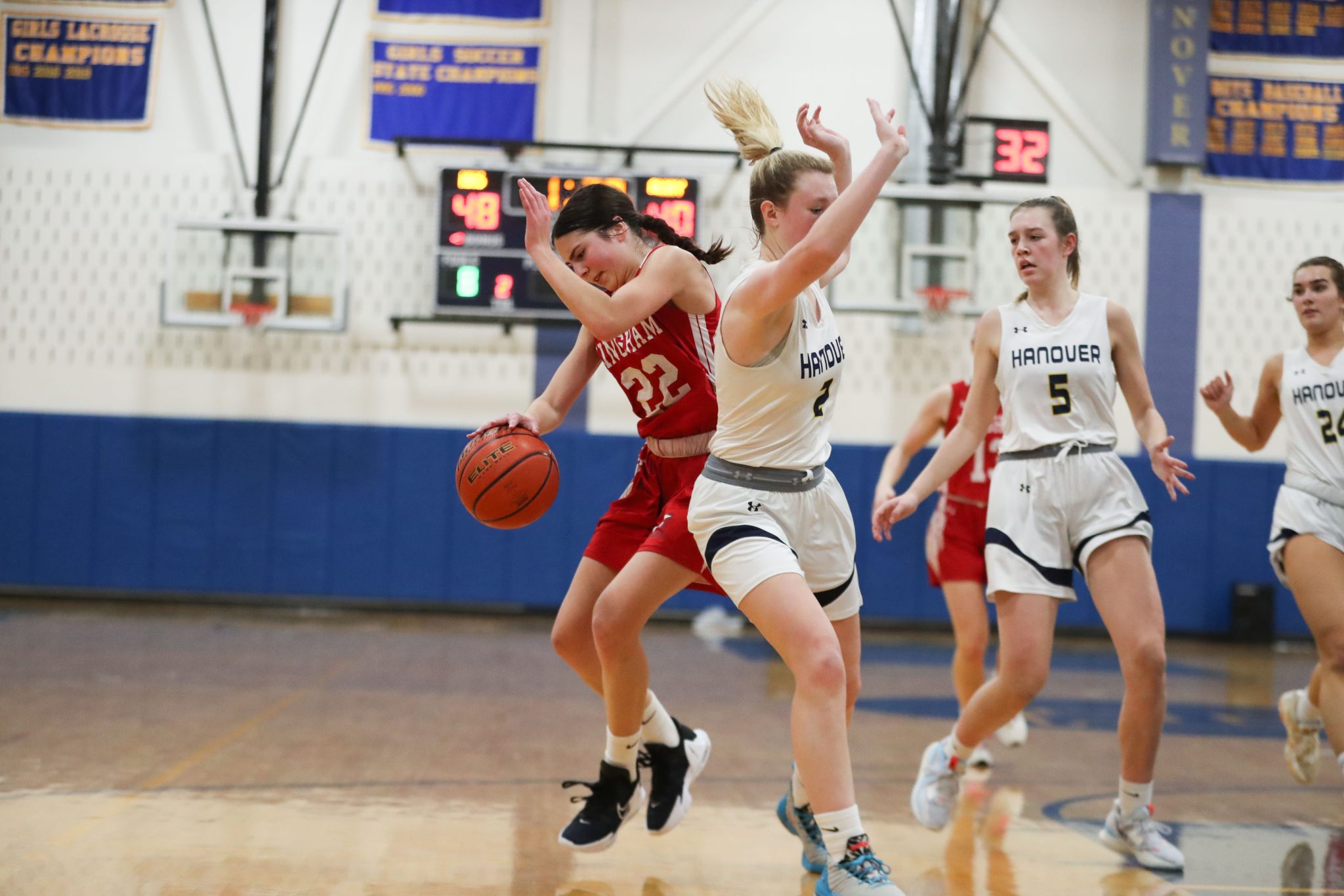 Junior Sophie Kerr defends a Hanover player from getting the inbound pass.