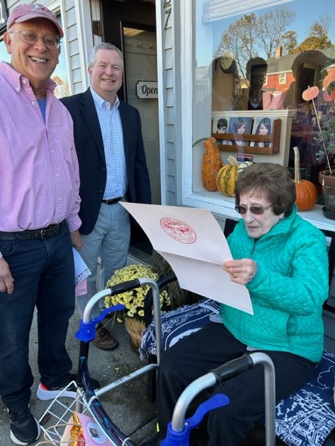 A certificate of congratulations was recently presented by the Select Board in recognition of a "very special occasion" -- longtime Hingham resident Phyllis Chapman's 105th birthday.