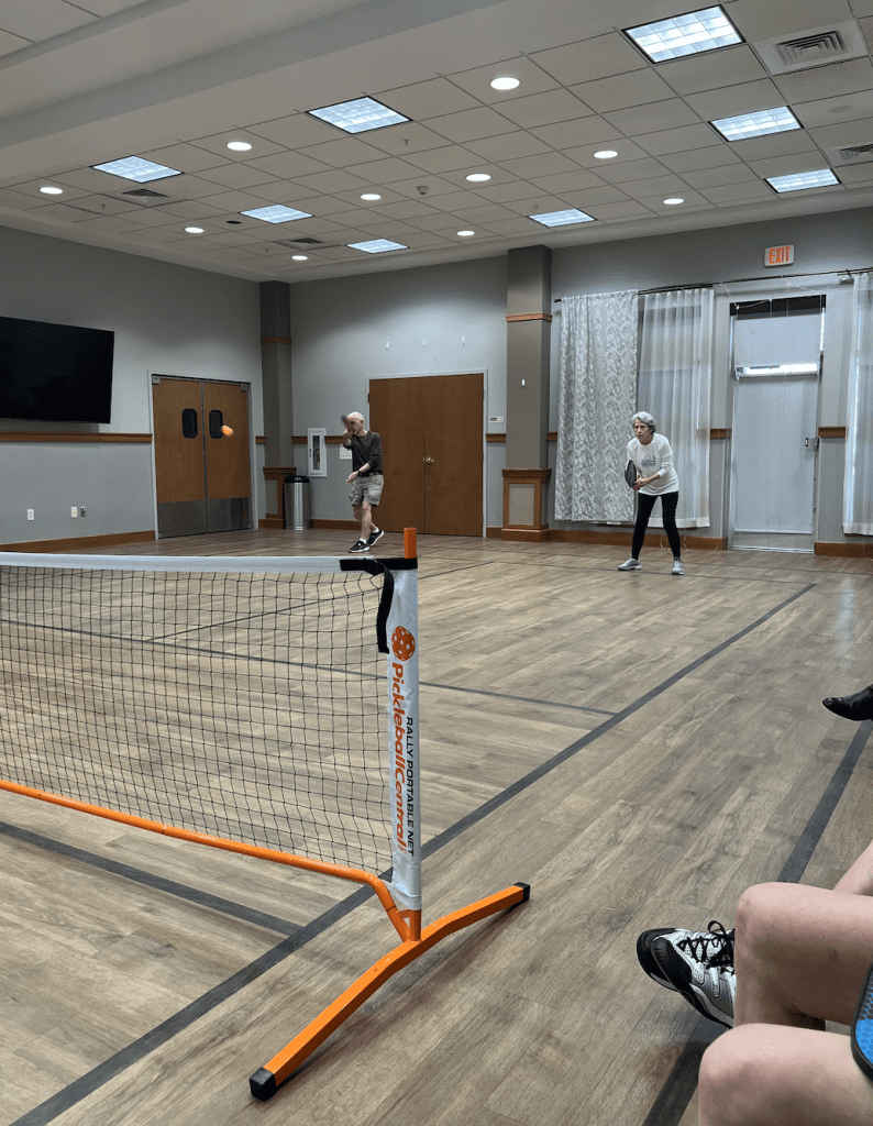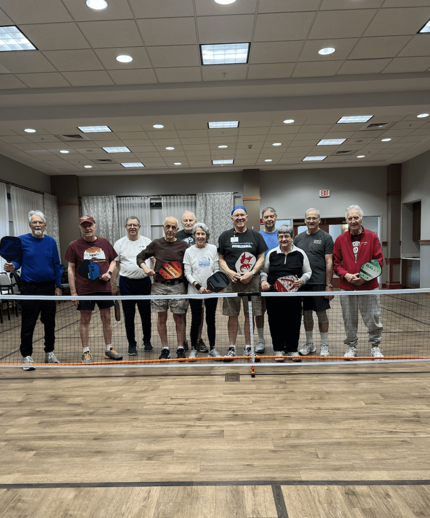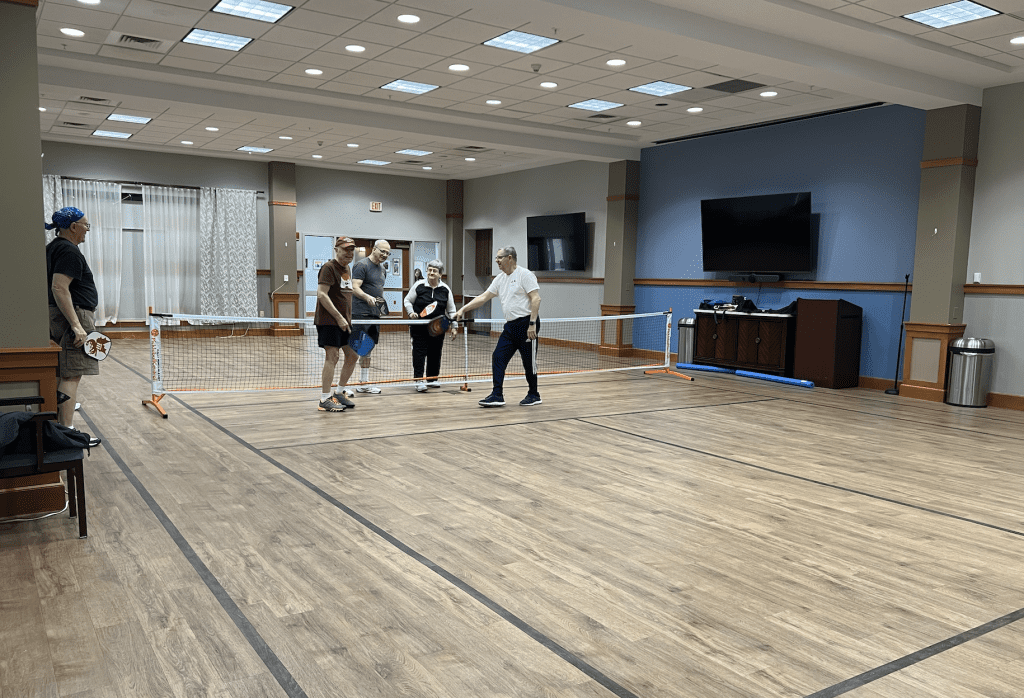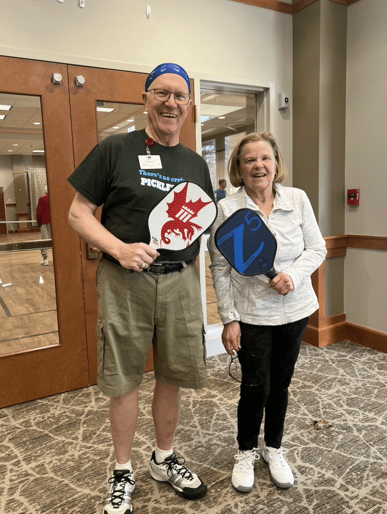 Behind the scenes, Bill worked closely with the Linden Ponds administration to create an indoor pickleball court in the main community space so that this active group of pickleballers can enjoy the sport all year long.