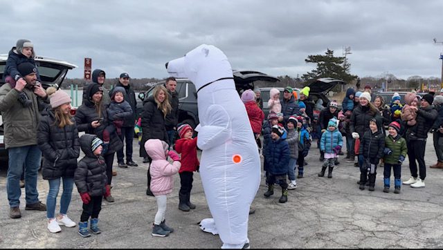 What started as a creative fundraising event during the pandemic, Polar Bear Pete’s plunge quickly turned into a fan favorite event for the school. This year HNS friends and family were able to purchase customized “Polar Bear Pete” Hingham Nursery School t-shirts ahead of the event. Prior to the event, the bundled up crowd of families enjoyed some fun music, hot chocolate, and donuts as they waited for Polar Bear Pete’s grand entrance. As 5-year-old Bodie Newland noted, “Polar Bear Pete must be so excited. His dreams are coming true today.”