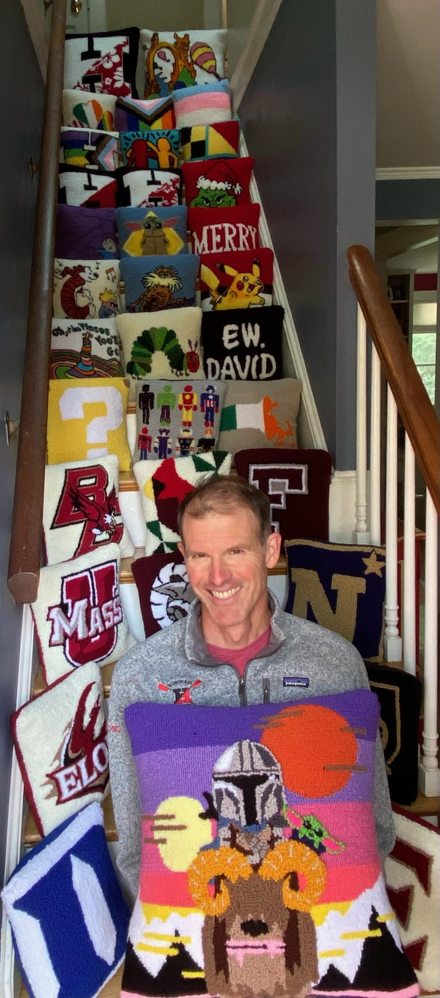 At the time they started punch needling, both of their children, Patch (HHS ’19) and Jack (HHS ’20), rowed for the HHS Crew team. Inspired by their grandfather, Donald Whamond, who was a founding member of Georgetown University’s rowing program in the 1950s (where Michael and MC met a few decades later), Patch and Jack both learned to row in middle school at Hingham Maritime Center.