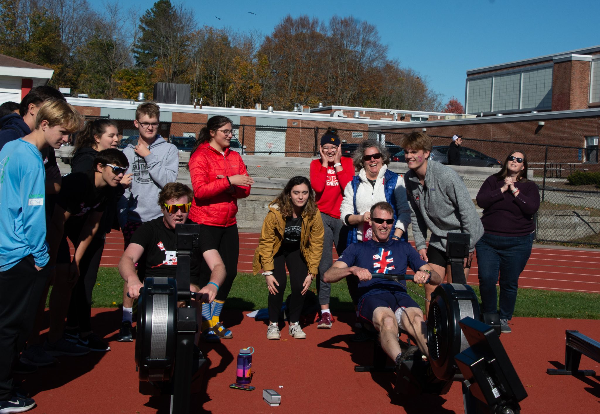 Jack (left) and Michael (right) competing in a 5K at the 2019 HHS Crew Ergathon with MC cheering on (behind Michael)