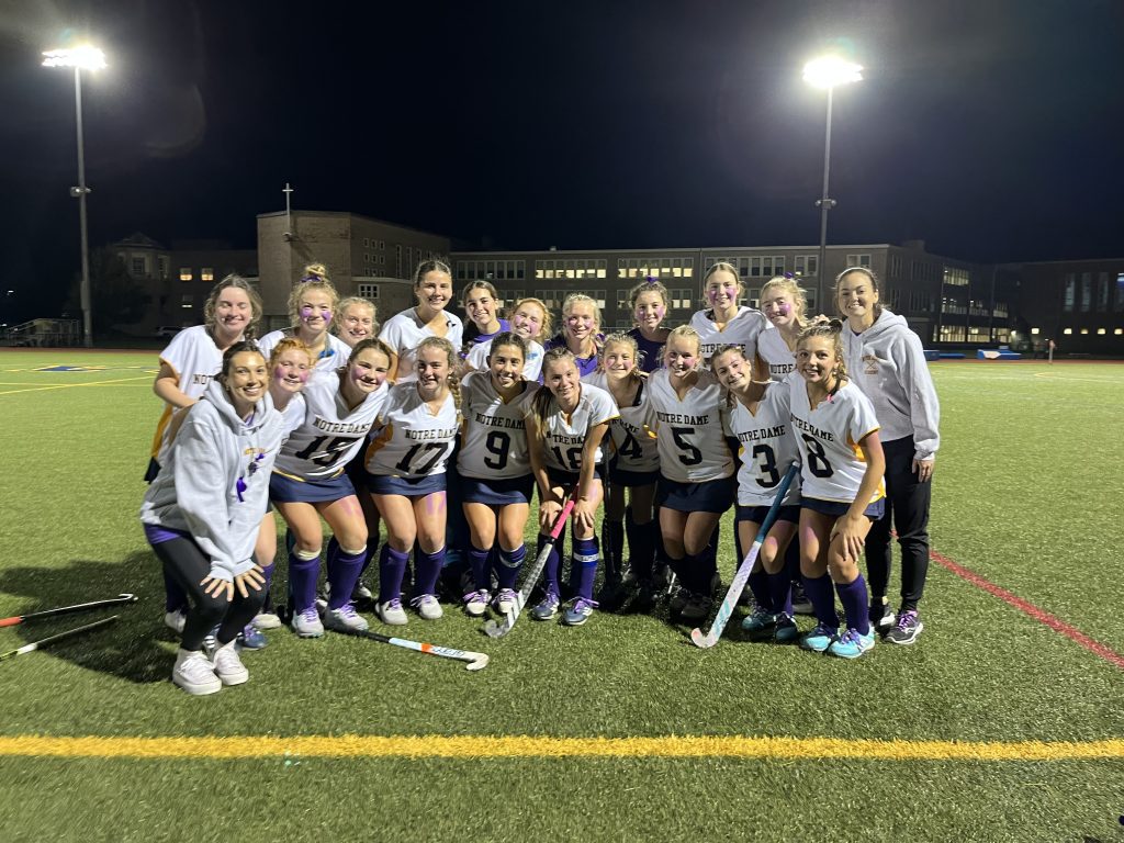 Purple clad varsity soccer and field hockey teams had an action packed afternoon on the field. Fans donned purple and pink apparel and cheered as Varsity soccer had a back and forth battle with Scituate High School that ended in a 1-1 tie. Bevan Doherty scored one goal for NDA and Emelia Daponte had a fantastic game with a shutout in the second half. The division 2 soccer team has a record of 8-3-3 and includes Cohasset resident Taylor Watts and Hingham residents Lily Pastan and Paige Holtschlag on its roster.