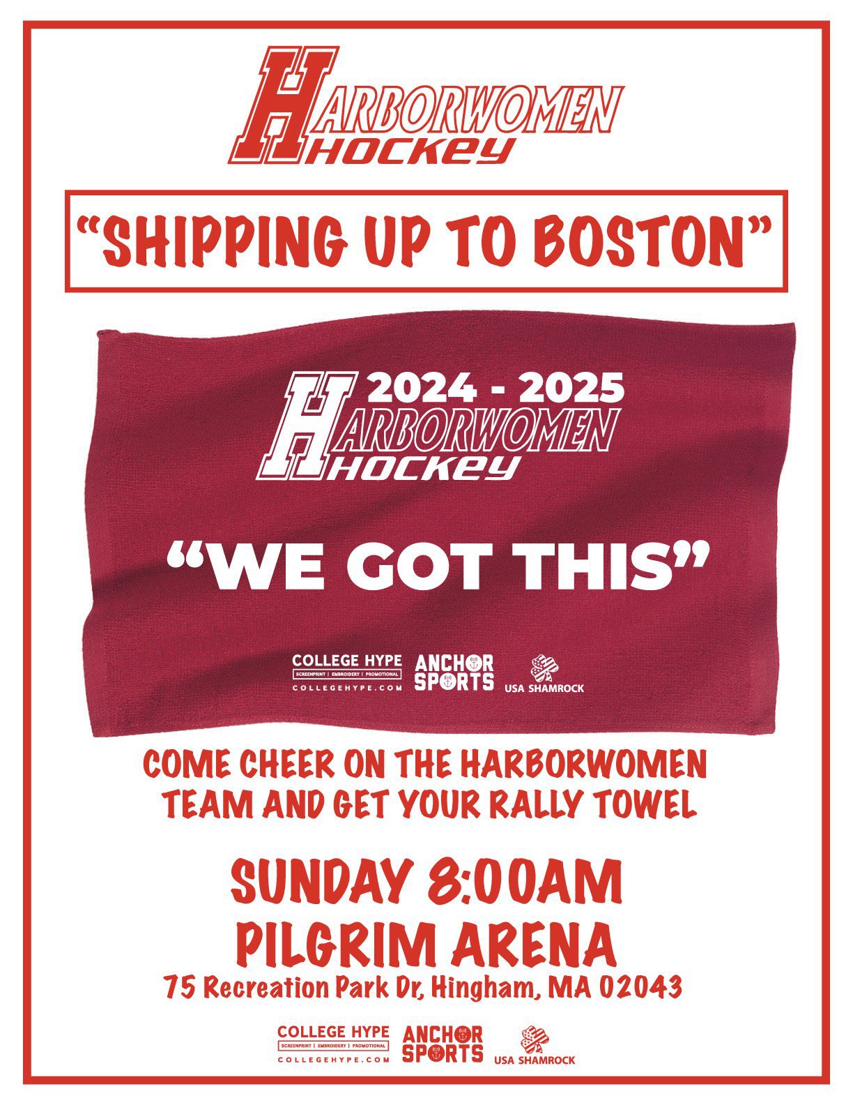 Before the girls head into Boston, there will be a send-off rally at Pilgrim Arena at 8am. Thanks to our friends at College Hype, the first 100 people to show up to Pilgrim will get a rally towel to wave at the big game.