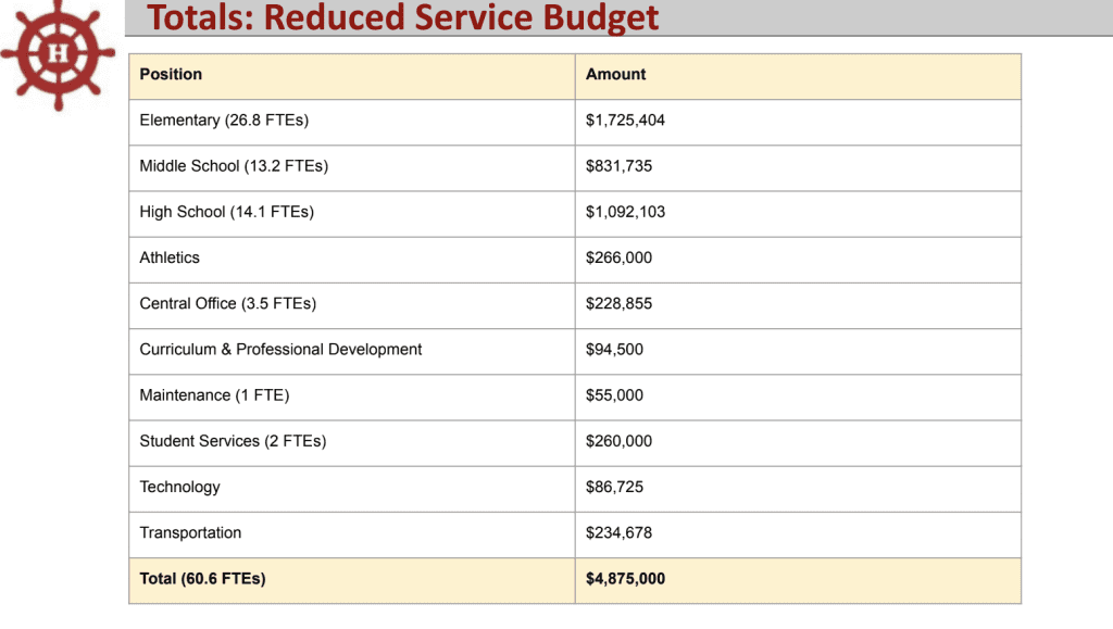 The budget presentation, which includes the impacts of the potential reductions, will be posted on the Hingham Public Schools website on Friday with all the details.