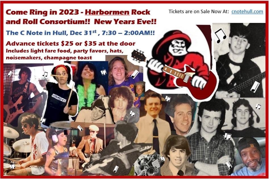 The Harbormen Rock and Roll Consortium (HRRC) is pleased to announce that tickets are available for a special New Years Eve Show at The C Note in Hull on Saturday December 31st from 7:30PM – 2:00AM. Advance Tickets can be purchased online here for $25.