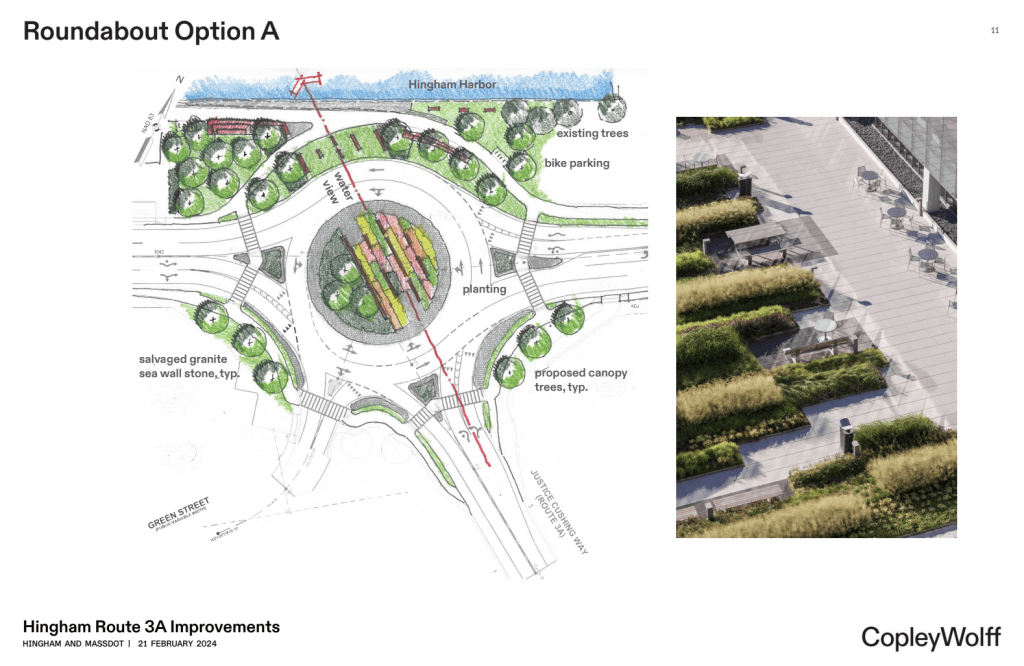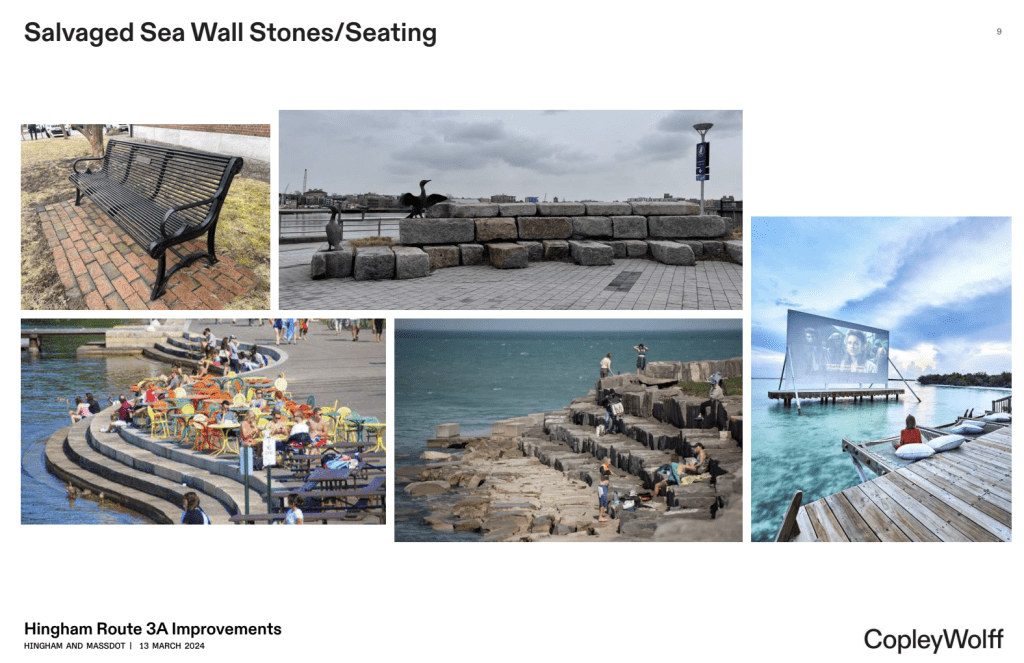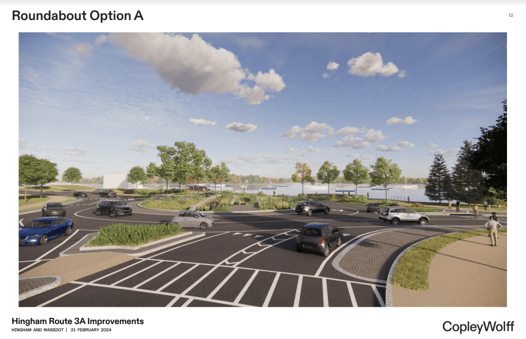 Overall, the project includes safety and related improvements along Route 3A, from the intersection of Otis Street and Broad Cove Road near the Hingham Lobster Pound to the intersection of George Washington Boulevard and Rockland Street.