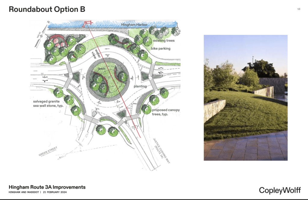 “We will have a clearly defined entrance into downtown Hingham,” Town Engineer JR Frey told the Select Board recently in an update. “There will also be a proper right-turn lane onto Otis Street and a left-turn lane into the Bathing Beach parking lot.” He also noted that there is, and will continue to be, “very close coordination” between the Rte. 3A and harbor resiliency projects.