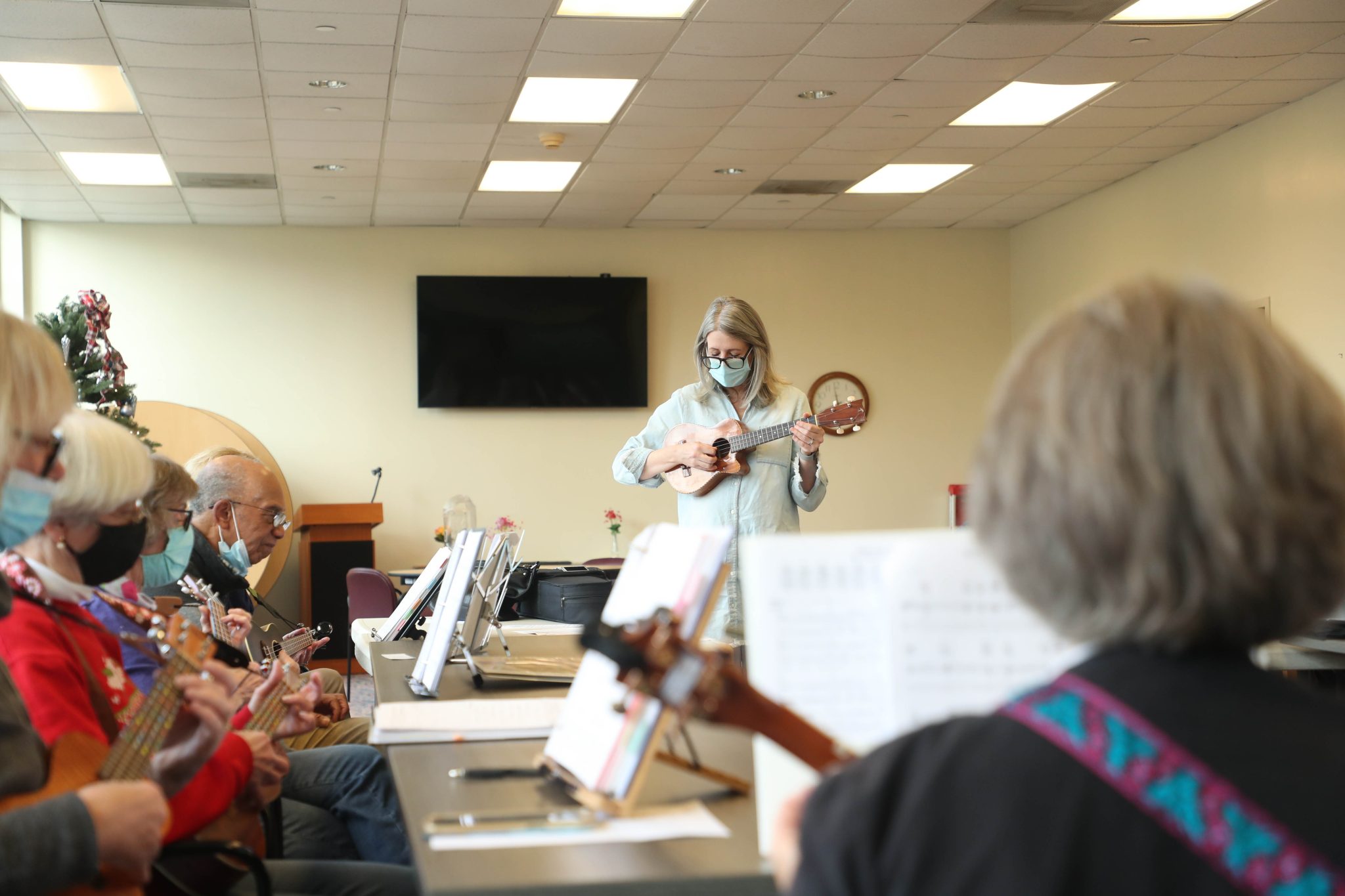 Learning to play the ukulele is a "wonderful activity" for seniors, according to Finn. "There's a learning curve at the beginning, but it's not a difficult instrument to learn how to play," she explained. "I always tell the class on the very first day that they'll learn how to play at least one song. All you have to know is about eight chords to be able to play 80 percent of the songs. The class gives students the skills to be able to learn any song they want, and ukulele music has such a warm and sweet sound to it."