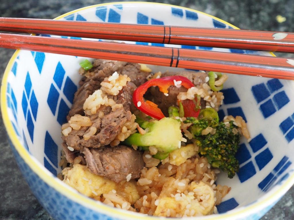 Steak Fried Rice – angus filet tenderloin, broccoli, egg, stir fry sauce. An elevated version of fried rice, the dish is presented with generous hunks of buttery tenderloin steak, crispy broccoli, red hot chilis, and plenty of velvety egg, served on a bed of fluffy-yet-crunchy-rice, and topped with a sprinkling of crispy sesame seeds and finished with a umami stir fry sauce.
