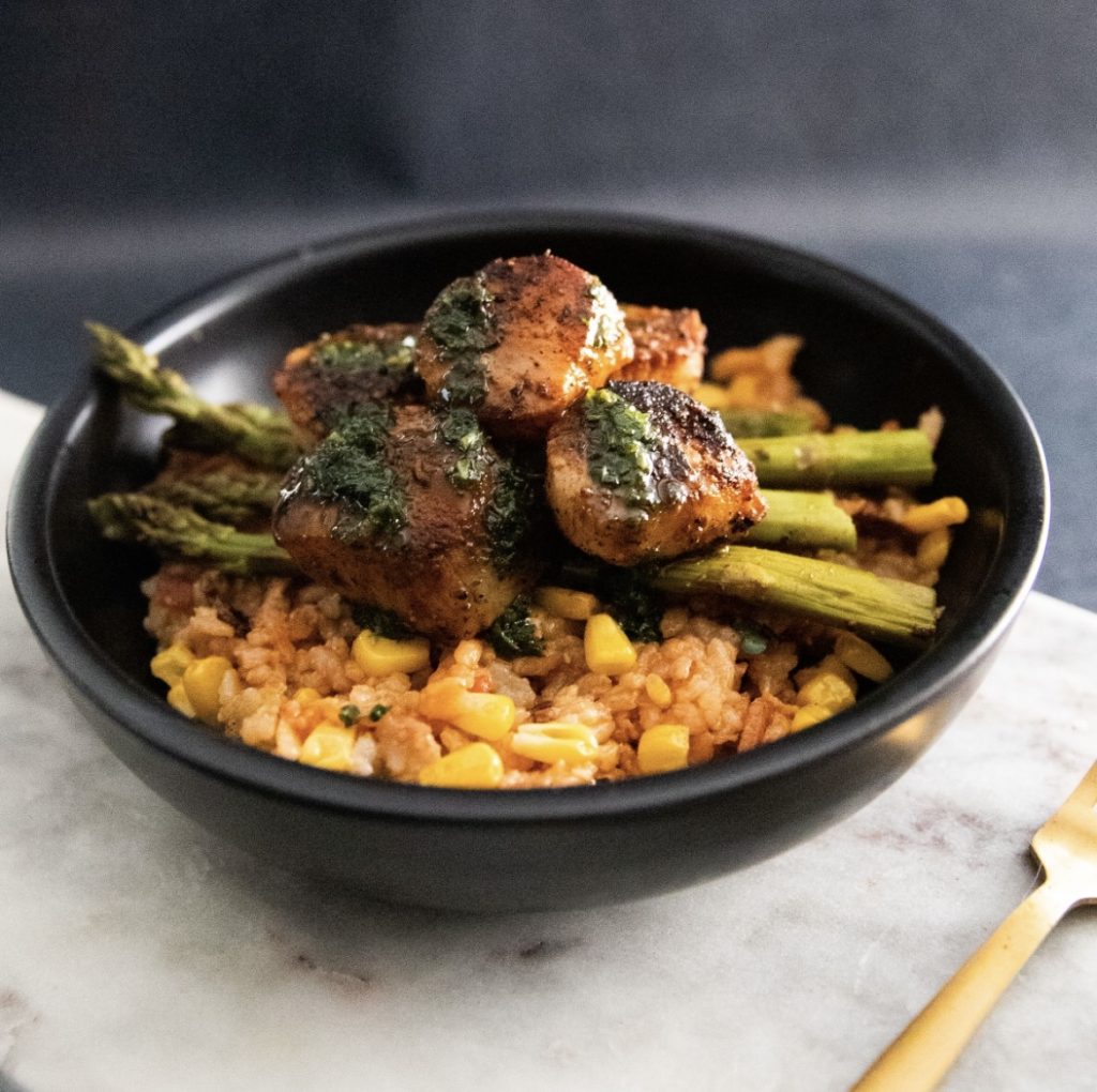 CK Blackened Scallops with Sweet Corn + Bacon Risotto ($24) – This dish was a very generous portion for one and featured tons of textures and well-balanced flavors. I wasn’t sure how scallops and risotto would reheat without losing the integrity of the delicate scallops, but it definitely delivered, and turned out to be quite the gourmet entrée. The dish centered around five seared scallops that were plump and juicy with just enough spice from the blackened seasoning. To reheat, I simply added 1-2 tablespoons of water to a skillet over medium heat, and heated up the scallops for a few minutes. The bacon risotto heated up nicely as well, filled with charred bits of sweet corn kernels that popped in your mouth alongside broccoli crowns. The sweet and jammy acidity of the tomato jam and the drizzle of basil oil at the end added extra depth and balance to the heat of the dish. My husband was very impressed with this meal as well.