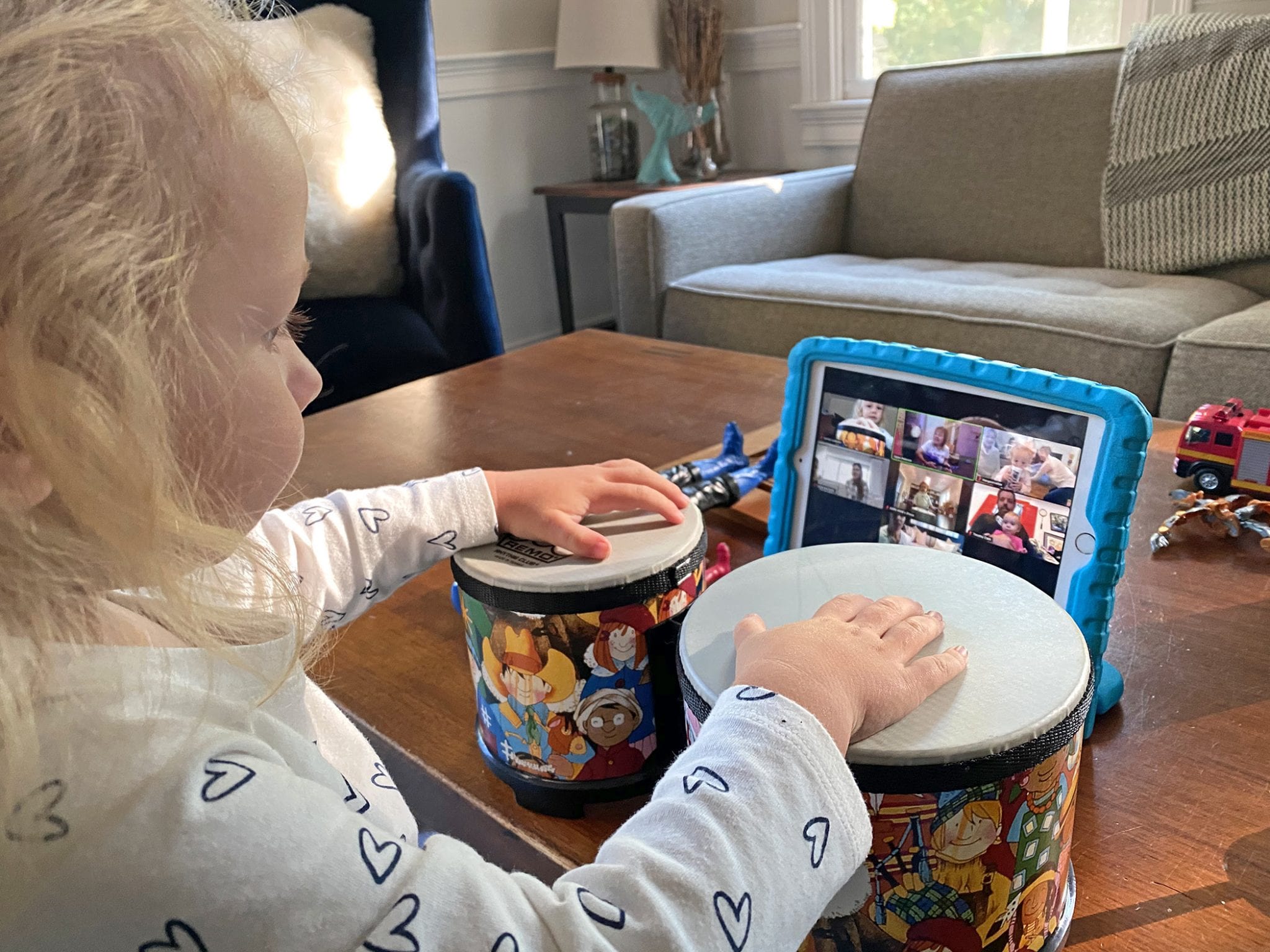 According to SSC Music Together Director Karen Peterson, current families are raving about the experience. The King family said, “Music Together Online is so great! Our three and one-year-old are just as captivated by it as when the classes were in person! We love the music, and getting to see Karen and our friends each week! We still get to sing and dance with all our friends, and you get a great CD and music book! Our kids have learned so much from Music Together! We LOVE Music Together Online, and we recommend it to all our friends!”