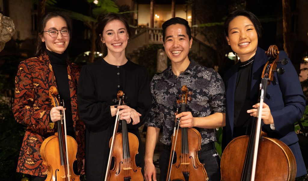 Formed in 2019, the quartet consists of violinists Maura Shawn Scanlin and Kiyoshi Hayashi, violist Emma Powell, and cellist Mina Kim, who are graduates of the New England Conservatory, the Shepherd School of Music, and Yale University. They are winners of the 2022 Associazione Europea Di Musica E Comunicazione International Chamber Music Competition, the 2021 Music Teachers National Association Chamber Music Competition, the 2020 Chamber Music Yellow Springs Competition, and were the 2022-23 ensemble-in-residence at Phillips Exeter Academy.