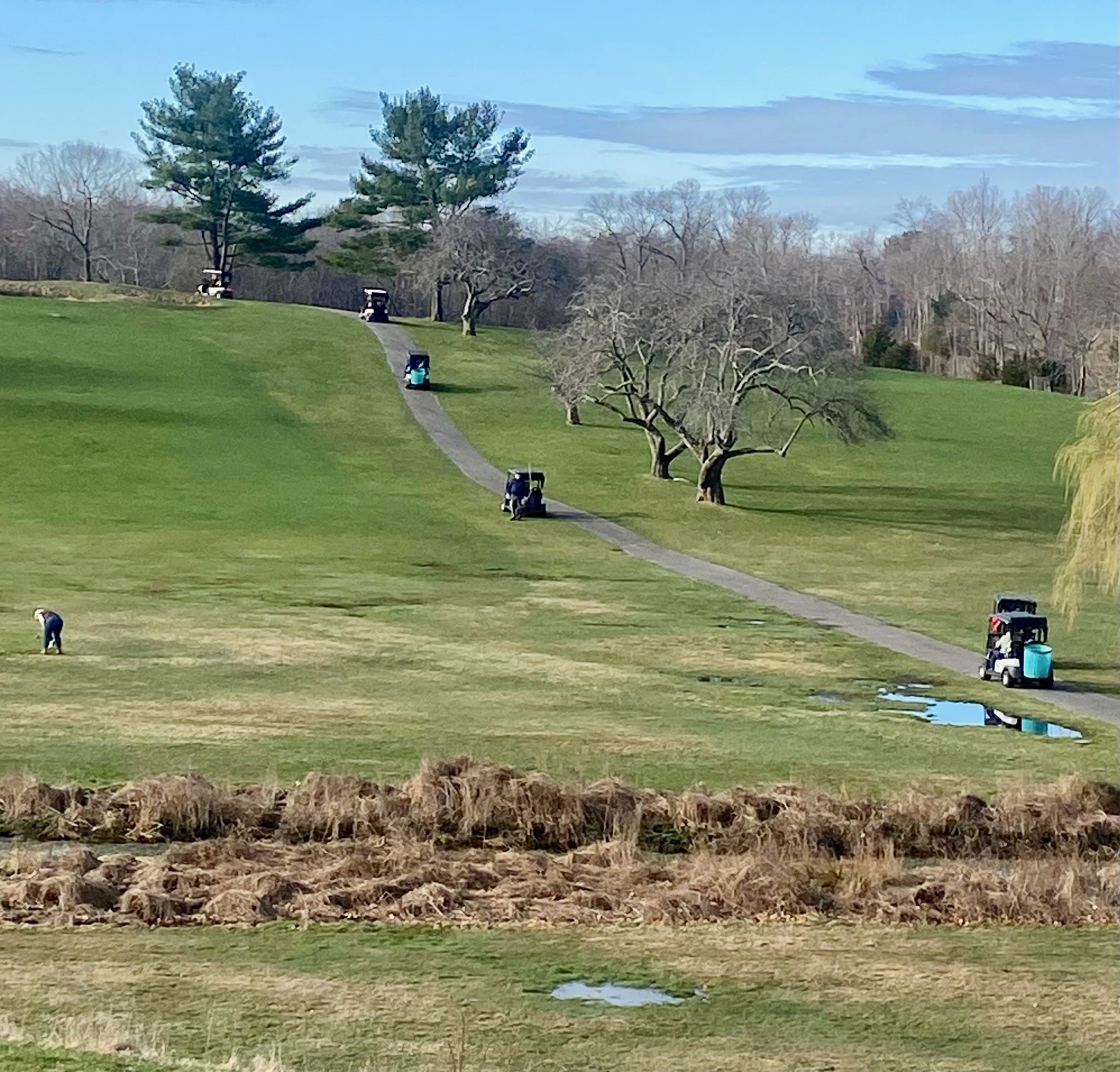 After encouraging words from Kevin Whalen, Executive Director, and detailed instruction from Jake Silva, Course Superintendent, the participants hit the course eager to make a difference. All participants were divided into teams, and with specific hole assignments, set out under perfect early Spring weather conditions for the task at hand. The Grounds Team outfitted carts with divot mix for repair, rakes for bunkers, leaves and sticks, barrels for debris and plenty of garbage bags for trash pick- up. After 3 hours of meticulous attention, the entire course was covered from tee to green and surrounding perimeter areas. Dozens of full barrels of debris, trash bags and utility vehicles full of wood scrap were collected in a finely tuned campaign to beautify the course we are so uniquely fortunate to call our SSCC.