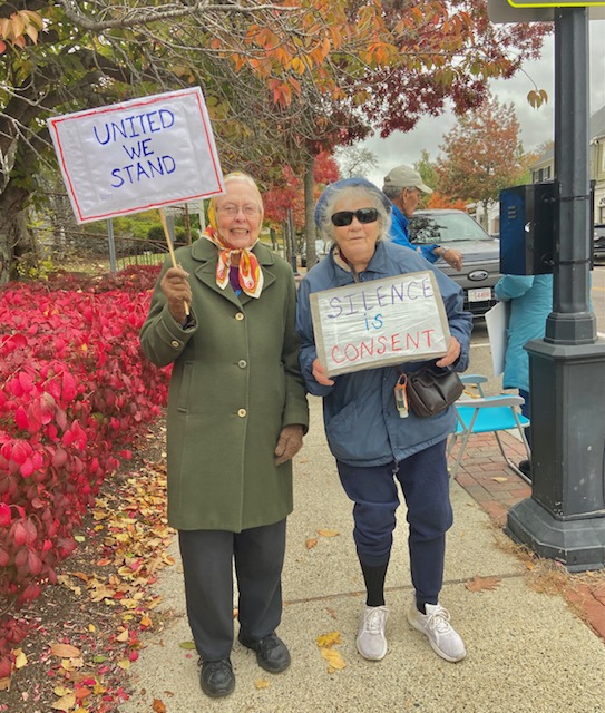 Participating in these standouts affords the opportunity to “keep motivated and develop supportive relationships through protest and our newsletter,” Fanuele said. “I do what I do because there are people sitting around worried and stewing over current events who can find a sense of camaraderie among those who are like-minded and realize they are not alone.”
