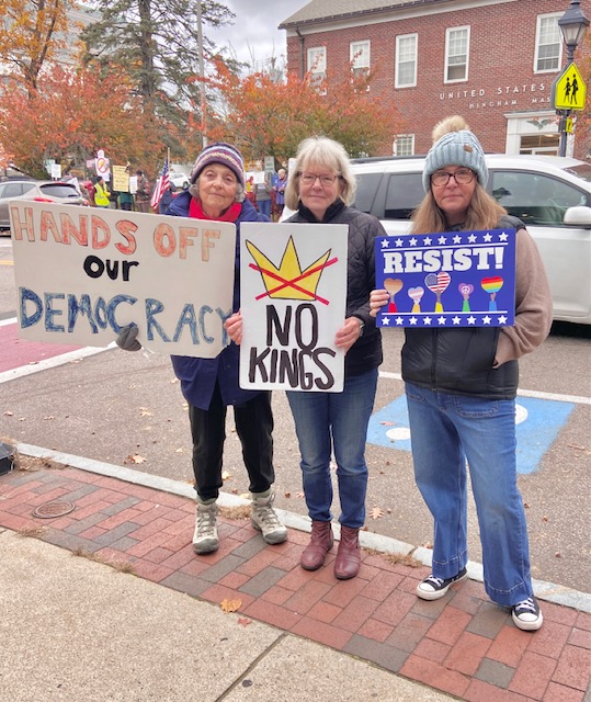 “We joined and collaborated with Indivisible Hingham-Hull and other local groups and individuals that day,” Hull resident Vinny Fanuele – co-organizer of the group with Hingham resident Izzy Gilmartin — told the Hingham Anchor. “It was an amazing No Kings Day #2 event all over the country, and our numbers that day were more than double the attendance during the [earlier] first rally.”