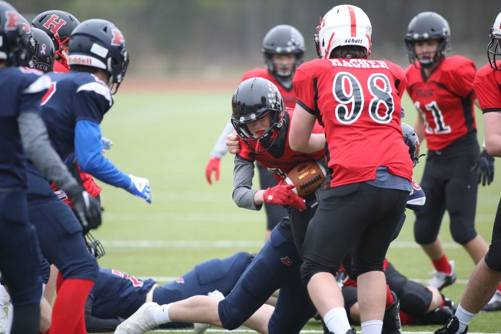 The season consisted of four regular-season games (typically six) and potentially two playoff games. The Raiders finished the season 3-1, only losing to undefeated Pembroke two weeks ago. The boys won their first playoff game last week vs. Hanover, setting up the rematch vs. Pembroke for the Super Bowl title on Sunday.