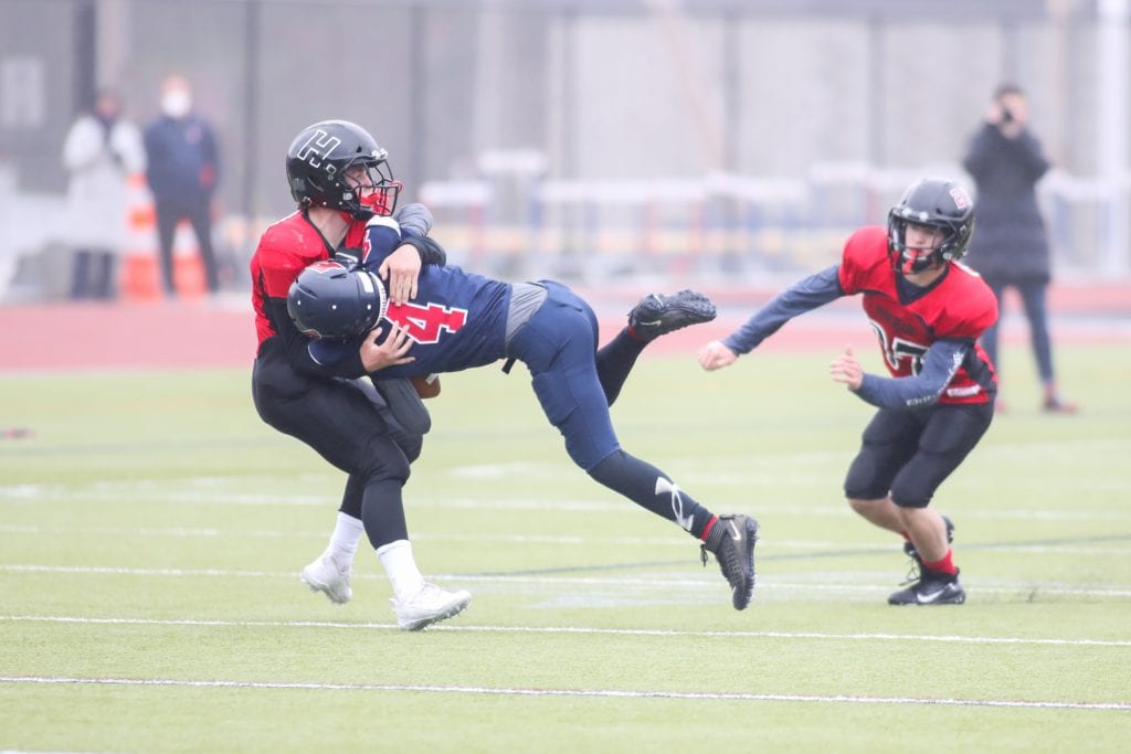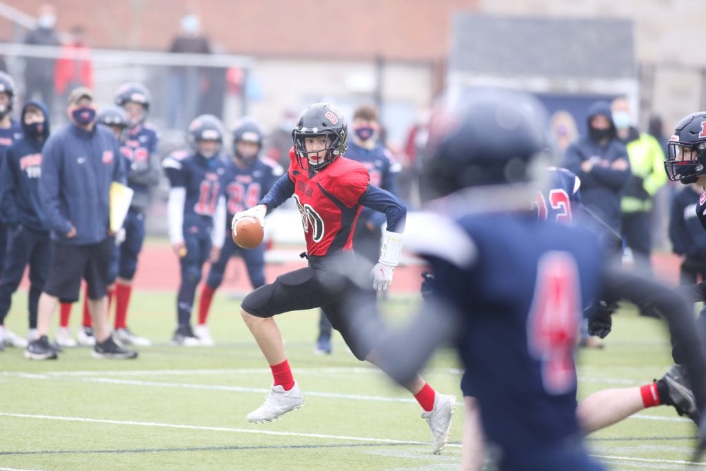 On the other side of the ball, they mixed it up with running and passing plays. Drew St. Pierre (110 yds, one TD), Mason Lennon (two 2-point conversion), and John Stenberg (40 yds) ran the ball with ease behind the outstanding play by the offensive line, especially big men Owen Cline and Brian Magner. Ryan St. Croix (100 yds, two TDs) and Alex Levy (30yds, TD) were on the receiving end of pinpoint throws by QB Jake Varholak (5-7, 160 yds, three TDs, TD Rush). Punter Matty Cummings pinned the Titans deep in their zone numerous times in the game.