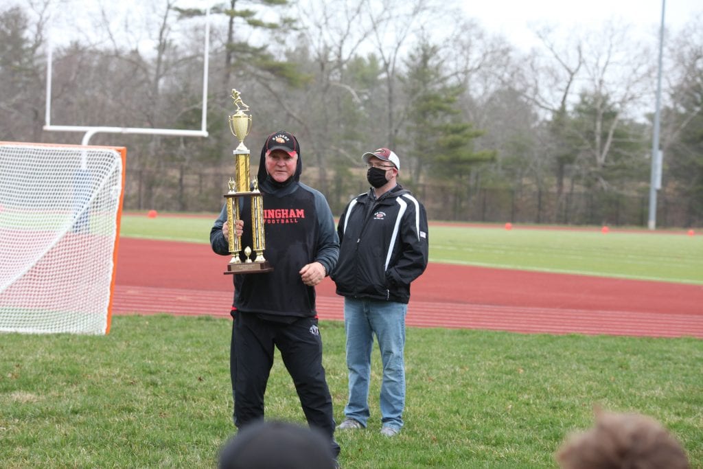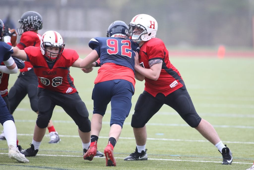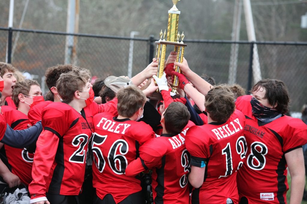 In early fall, Hingham Youth Football Head Coach Jeff Reilly thought his 15-year coaching career was over. Certain Old Colony Youth Football League teams were putting together an abbreviated season, but the powers that be didn’t give the okay for Hingham to field a team. Players and coaches alike were devastated, especially the 8th Grade squad. Many of these kids and coaches have been playing together since second grade, and with some of them moving onto private school or just deciding not to play at the high school level, they thought they missed their chance at one more go around.