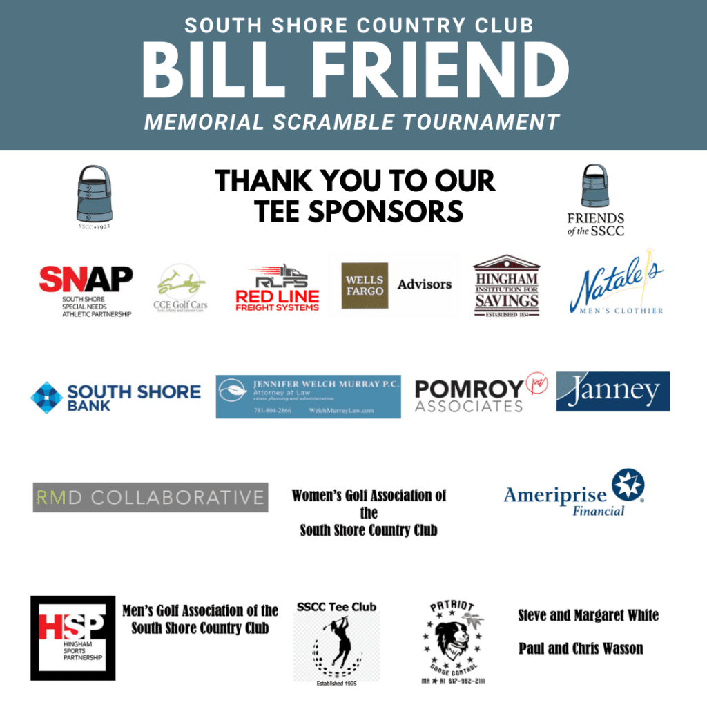 Thank you to the golfers, generous sponsors, and local vendors for making the third annual Bill Friend Memorial Tournament a huge success! There was no greater friend to the South Shore Country Club than Bill Friend who passed away in 2021. Bill served on the South Shore Country Club Management Committee and made countless positive contributions to the SSCC over the years.