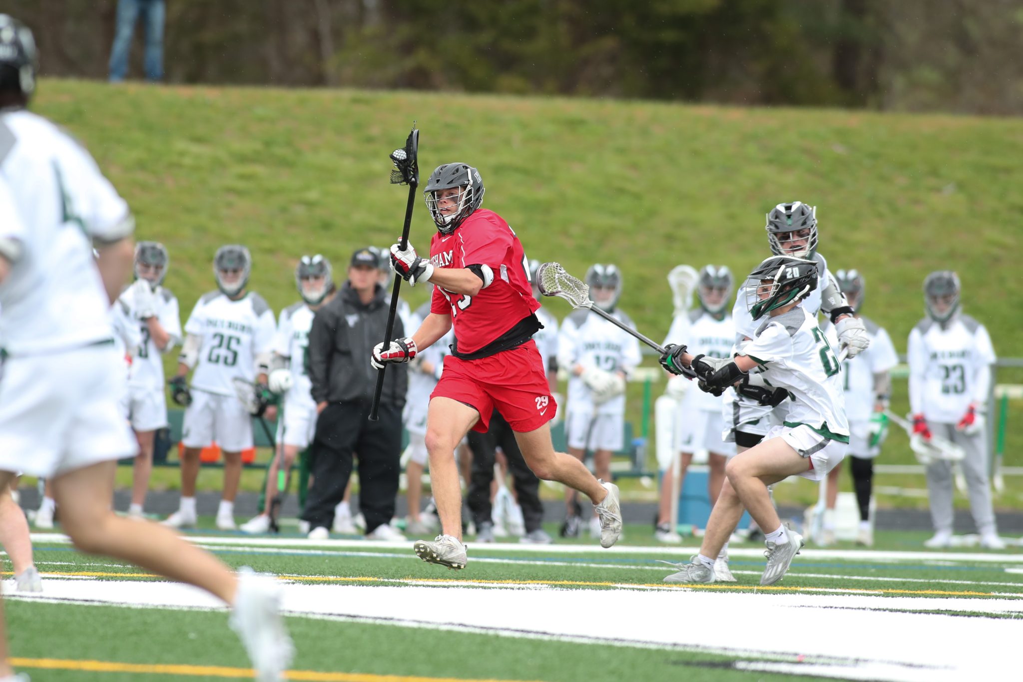 Senior Charlie Packard was also a dominating force scoring a hat trick and setting the tone for the game kicking it off with a goal in the first two minutes. McKenna and Packard have become quite the duo combining for over half the teams’ points and having great chemistry on the field. Packard commented on McKenna and the effect he had on the game “he was that spark that lit us in the second half so having a young guy like that step up, especially in a game like this is super big for us.”