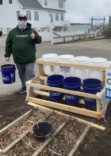 The Bucket Rack Gardens are affordable. We dumpster dive and use culls for our lumber supplies. A group of retired men have been helping with construction. Some of the buckets are repurposed coming from local restaurants and sandwich shops. We save on soil medium by filling the bottom of the buckets with sticks, leaves and a cardboard divider. We only use six to eight inches of soil medium. The design allows for the use of compost tea application and there are no harsh chemicals ever being used.