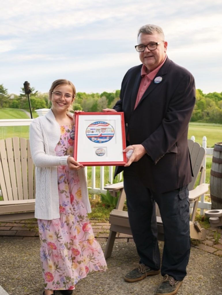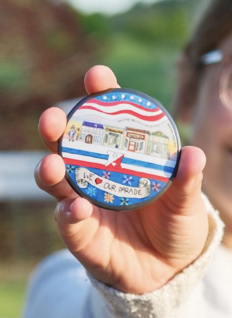 As always, the quality of the submissions challenged the Committee in selecting a winner but, in the end, the winner was chosen, Gabriella Nardello of Saint Paul’s School. The winning button featured an interpretation of Lower Main Street with some of its iconic stores, and with a foreground of the tricolor center line, all overflown by the Stars and Stripes. As the winner of the 2024 Button Competition, Gabriella will receive a gift capturing her winning artwork but most importantly, her button will generate financial donations to support the continuation of the Hingham 4th of July Parade tradition and will become part of the archive of the Parade. On July 4th , as button design winner, Gabriella, will ride as a VIP at the head of the Parade!
