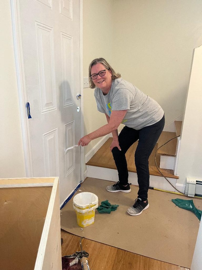Realizing the urgent need both locally and nationally, and that providing safe affordable housing is a priority for the Democratic Party, the HDTC decided to highlight our local commitment to this issue by volunteering to help build affordable homes for families in our community. With the kind and patient mentoring of the skilled volunteers, we caulked trim, painted doors and closets, hung cabinets, polyurethaned railings and borders, built trellises and dug a trench for basement windows. All of this was accomplished with a spirit of pride and joy, knowing that one day soon a family with 7 year-old twins would have enough rooms so that each twin, a girl and boy, would have their own bedroom, and that a single mom would be able to provide a stable environment for her honor-roll teenagers. The day was complete when we signed the wooden beam in the basement, leaving a hopeful message of peace and happiness for the family. Our group of volunteers plans to be present at the dedication ceremony when South Shore Habitat hands the keys to the new owners and we can share in their joy.