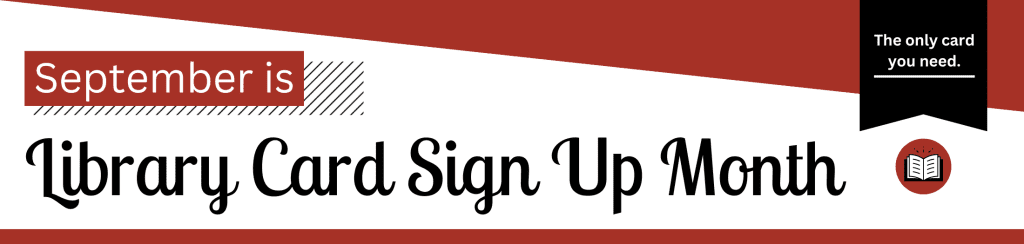 September is National Library Card Sign-Up Month, so what better time to remind everyone of the benefits of a Hingham Public Library card! After all, libraries are the easiest thing in the world to promote: we offer free access to physical and digital books, audiobooks, movies, music, and events for all ages, a huge selection of technology, toys, games, and puzzles, and no more late fees!